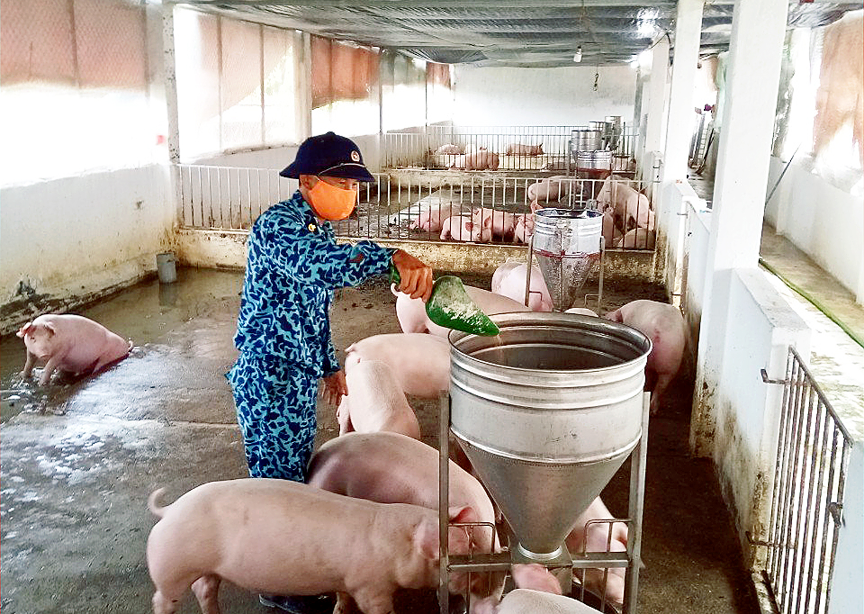 Nhằm đảm bảo chăn nuôi an toàn, các đơn vị thực hiện đồng bộ các biện pháp để duy trì, phát triển TGSX phục vụ nhu cầu ăn uống hàng ngày của bộ đội, chuyển đổi đàn vật nuôi theo hướng tăng cường số lượng đàn gia súc, gia cầm như bò, vịt, gà... Đại tá Vũ Văn Hinh, Trưởng phòng Quân nhu, Cục Hậu cần cho biết: Do ảnh hưởng của dịch Covid-19 nên Bộ Quốc phòng chưa bố trí được nguồn ngân sách hỗ trợ khôi phục và tái sản xuất nhưng bằng nội lực của mình, các đơn vị đã chủ động nguồn giống gia súc, gia cầm nhằm bảo đảm đủ lượng thịt, trứng tại chỗ phục vụ nhu cầu dịp Tết và chuẩn bị thực phẩm cho tiếp nhận, huấn luyện chiến sĩ mới năm 2021. Một số đơn vị được nhận vịt, ngan giống chịu mặn của Trung tâm Nghiên cứu vịt Đại Xuyên hỗ trợ đang phát triển tốt. Các đơn vị khác nằm trong vùng dịch tả lợn châu Phi sẵn sàng chuồng trại để tái đàn an toàn.