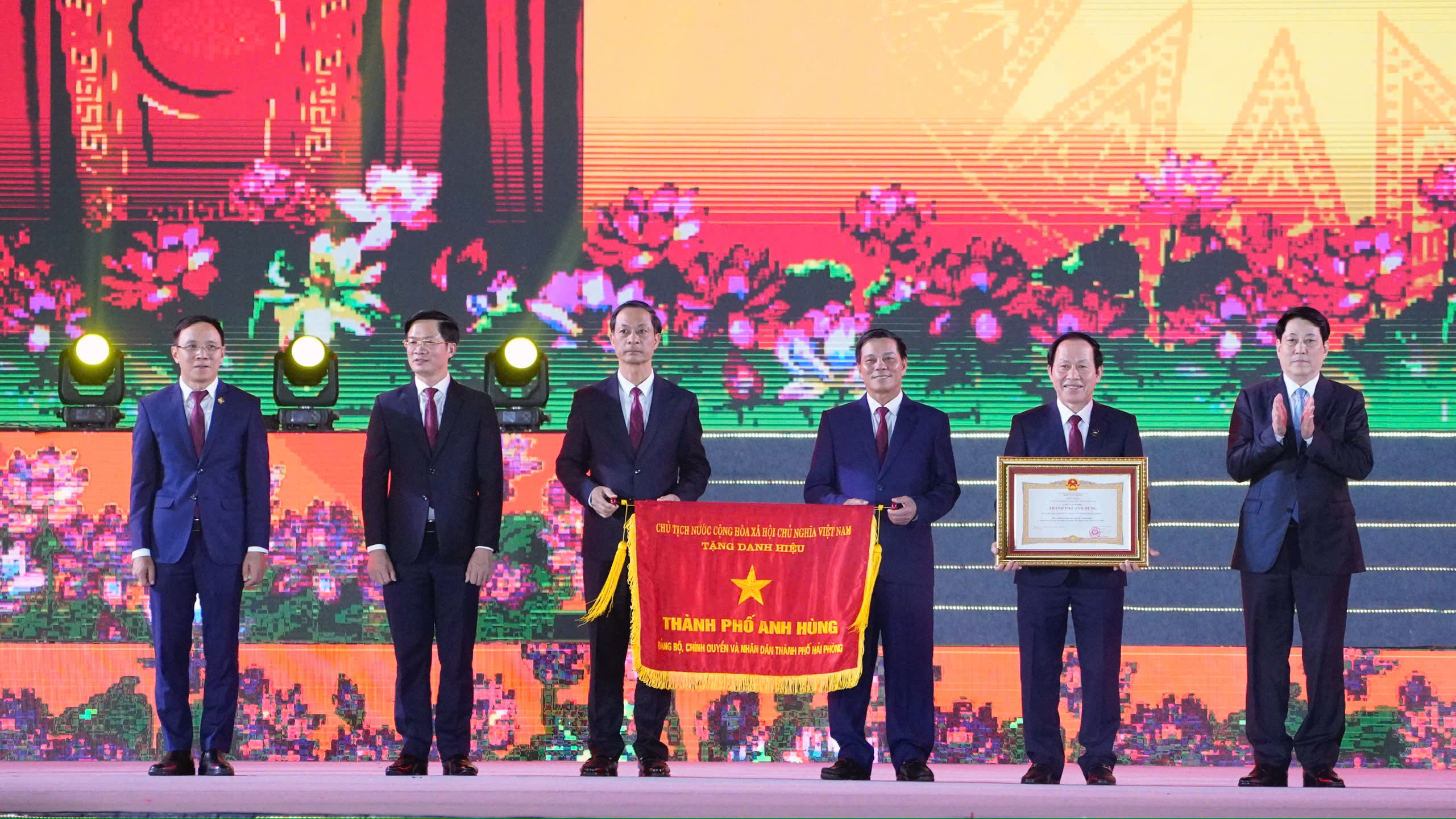 Tại sự kiện, Chủ tịch nước Lương Cường đã trao tặng danh hiệu “Thành phố Anh hùng” cho Đảng bộ, chính quyền và nhân dân TP Hải Phòng.