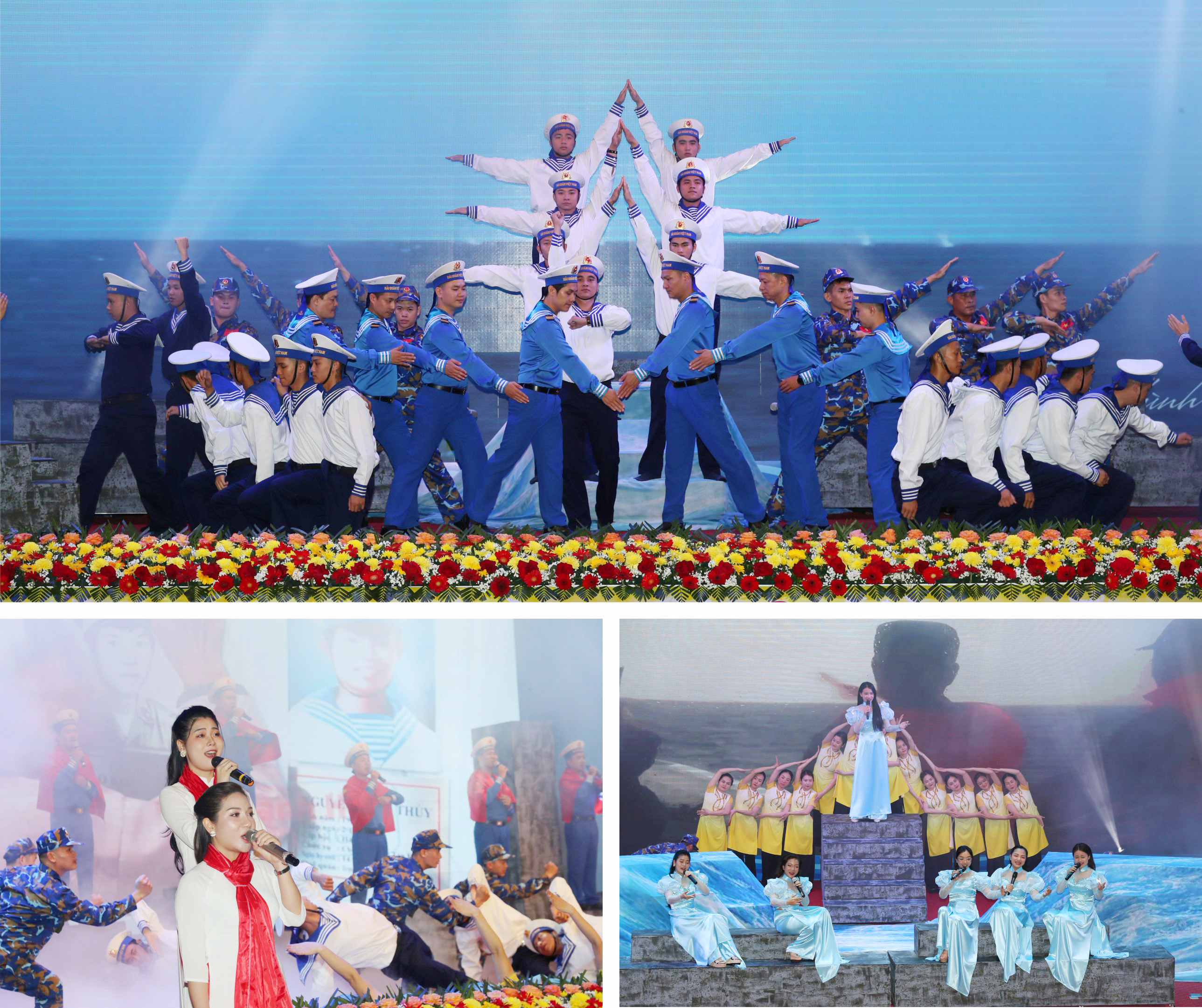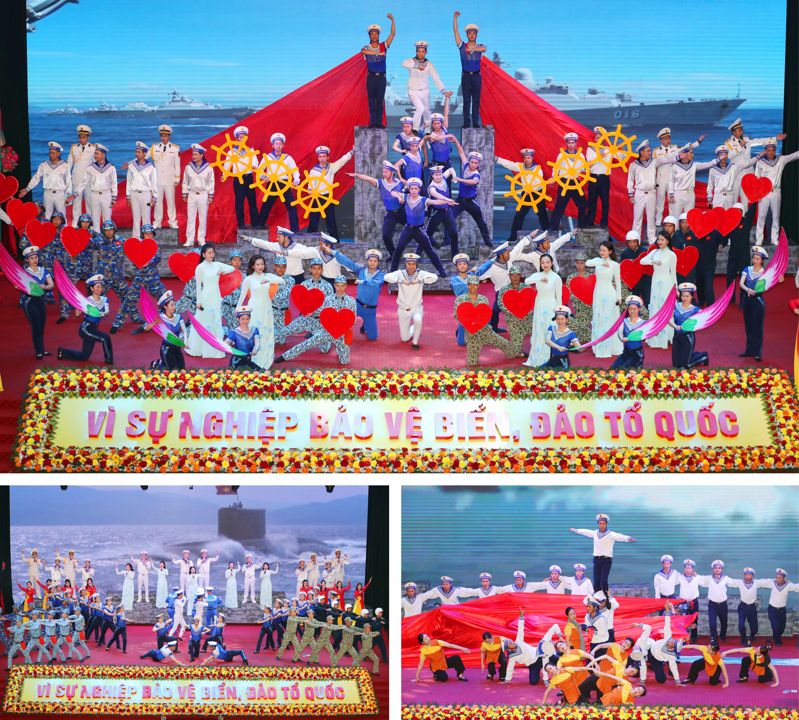 Chương trình văn nghệ chào mừng buổi lễ do các diễn viên Đoàn Văn công Hải quân biểu diễn