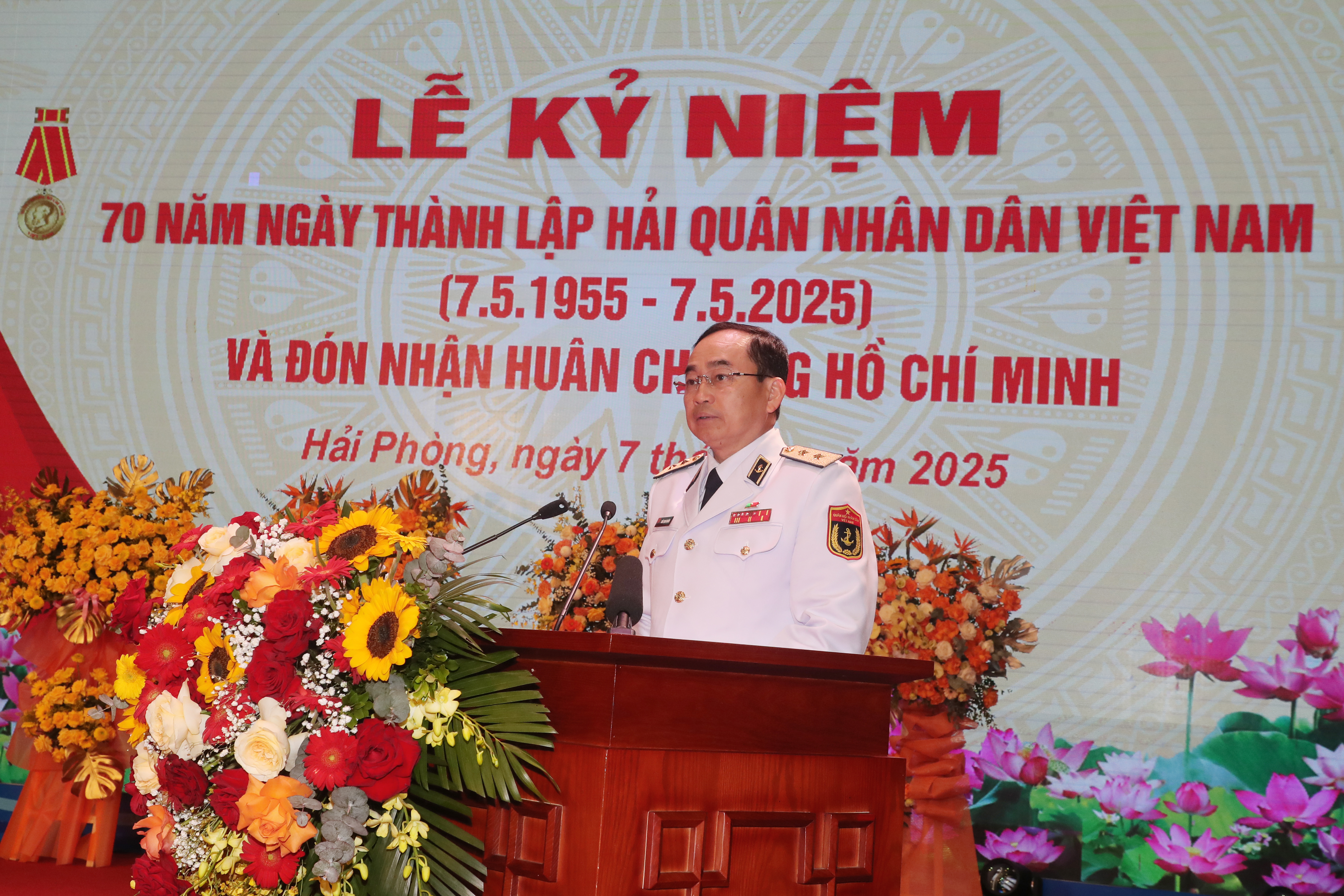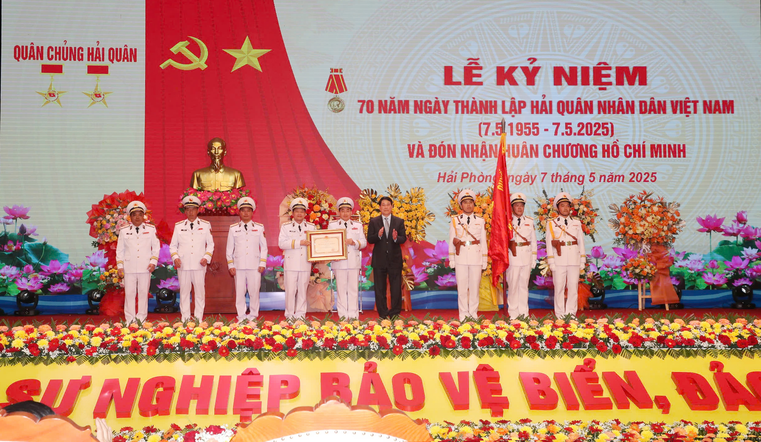 Trao Huân chương Hồ Chí Minh tặng Quân chủng Hải quân và phát biểu tại buổi lễ, Chủ tịch nước Lương Cường thay mặt Lãnh đạo Đảng, Nhà nước nhiệt liệt chúc mừng, biểu dương những thành tích và đóng góp to lớn của HQND Việt Nam trong sự nghiệp cách mạng vẻ vang của Đảng, của dân tộc trong 70 năm qua.