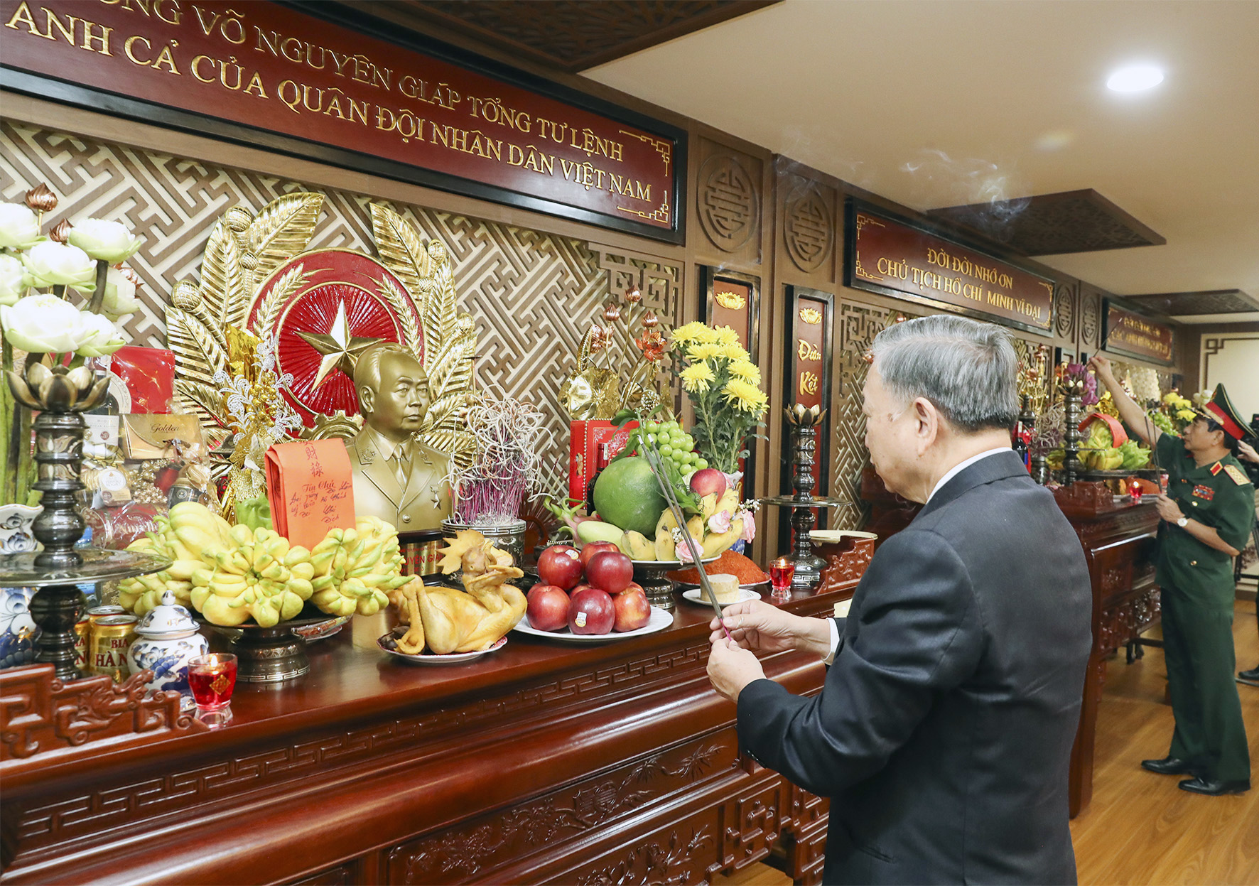 Chủ tịch nước dâng hương tại Phòng thờ Bác Hồ, Đại tướng Võ Nguyên Giáp và các anh hùng, liệt sĩ