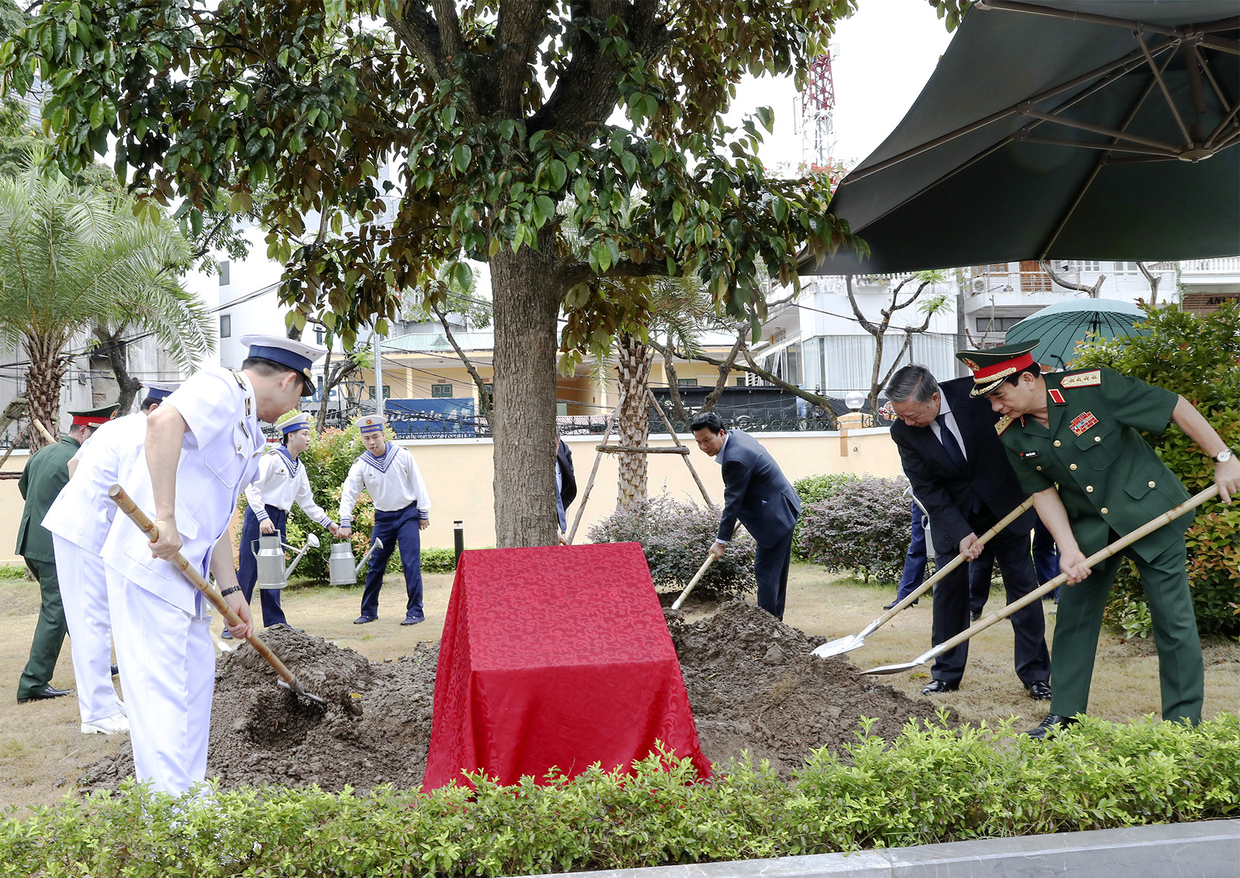 Chủ tịch nước Tô Lâm và Đại tướng Phan Văn Giang trồng cây lưu niệm tại khuôn viên Quân chủng Hải quân