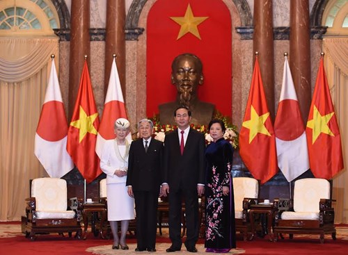 Nhận lời mời của Chủ tịch nước Trần Đại Quang, Nhà vua và Hoàng hậu Nhật Bản đã đến Hà Nội trong chuyến thăm cấp Nhà nước tới Việt Nam từ ngày 28-2 đến ngày 5-3. Ngay sau Lễ đón chính thức vào sáng ngày 1-3, tại Phủ Chủ tịch, Chủ tịch nước Trần Đại Quang và Phu nhân đã hội kiến với Nhà vua và Hoàng hậu Nhật Bản.