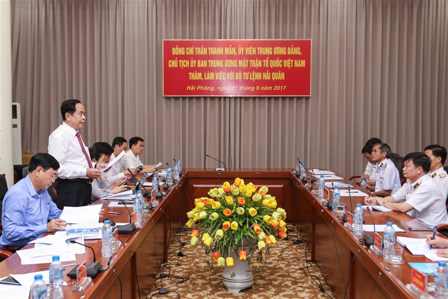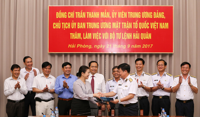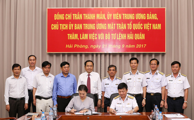 Sáng 21-9, tại Hải Phòng, Đoàn cán bộ Uỷ ban Trung ương Mặt trận Tổ quốc (UBTW MTTQ) Việt Nam do đồng chí Trần Thanh Mẫn, UVBCHTƯ Đảng, Chủ tịch UBTW MTTQ Việt Nam làm trưởng đoàn đã đến thăm và làm việc với Bộ Tư lệnh Hải quân. Thiếu tướng Trần Hoài Trung, Bí thư Đảng uỷ, Chính uỷ Hải quân chủ trì tiếp đoàn.