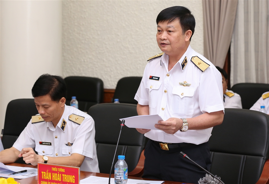 Tại buổi làm việc, Thiếu tướng Trần Hoài Trung đã báo cáo kết quả hoạt động phối hợp giữa Bộ Tư lệnh Hải quân với các ban, bộ, ngành Trung ương, địa phương thời gian qua đồng thời đề xuất chủ trương, giải pháp trong thời gian tới. Đồng chí Chính uỷ Hải quân khẳng định: “Dù trong bất cứ hoàn cảnh khó khăn nào, cán bộ, chiến sĩ Hải quân vẫn một lòng trung thành với Đảng, với Tổ quốc và nhân dân; không sợ khó khăn, gian khổ, chấp nhận hy sinh để bảo vệ tính mạng, tài sản của nhân dân, bảo vệ Đảng, bảo vệ chế độ XHCN, bảo vệ vững chắc từng tấc đất, sải biển thiêng liêng của Tổ quốc”.