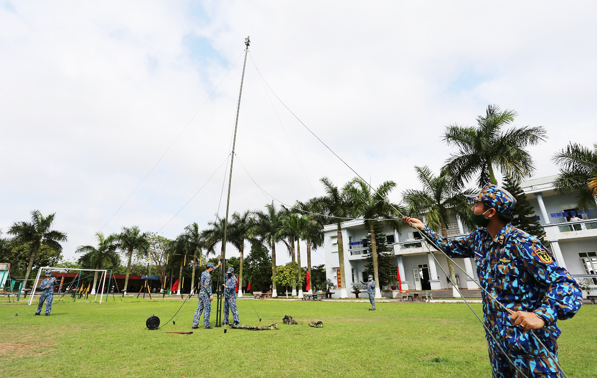 Nhân viên Lữ đoàn 602 triển khai ăng-ten hệ thống trunking
