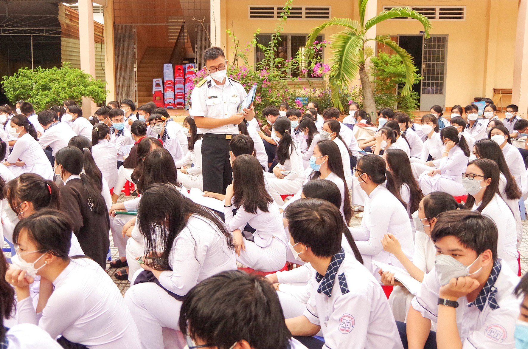 Em Nguyễn Hải Anh, sinh viên Học viện Cán bộ TP. Hồ Chí Minh tâm sự: Hàng ngày em chỉ được biết về biển, đảo và bộ đội Hải quân qua các phương tiện thông tin, mạng xã hội. Mỗi lần được tiếp cận thông tin này chúng em lại phải có sự sàng lọc, lựa chọn để định hướng cho tư tưởng chính mình. Đến hôm nay được nghe các báo cáo viên là người thật, việc thật, những người trực tiếp làm nhiệm vụ ngoài biển, đảo nên chúng em thấy rất hữu ích. Mỗi nội dung mà các báo cáo viên truyền đạt hôm nay như một nội dung học tập “đặc biệt” cho sinh viên. Em và các bạn rất biết ơn về sự hy sinh của các chú bộ đội Hải quân để chúng em có cuộc sống thanh bình của ngày hôm nay.