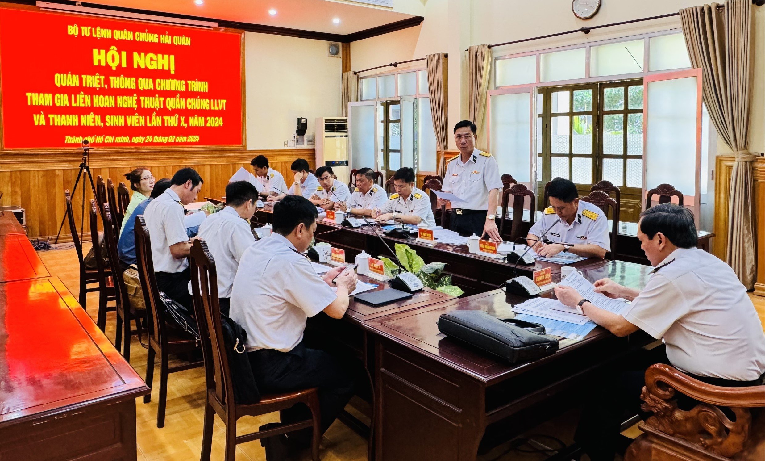 Ngày 24/2, tại TP. Hồ Chí Minh, Quân chủng Hải quân tổ chức hội nghị quán triệt và thông qua nội dung chương trình tham gia Liên hoan nghệ thuật quần chúng lực lượng vũ trang và thanh niên, sinh viên lần thứ X năm 2024. Chuẩn Đô đốc Phạm Văn Luyện, Phó Chủ nhiệm Chính trị Hải quân chủ trì.