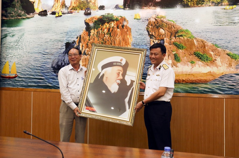 Chuẩn Đô đốc Phạm Văn Vững tặng Bảo hiểm xã hội Việt Nam ảnh Bác Hồ đội mũ Hải quân