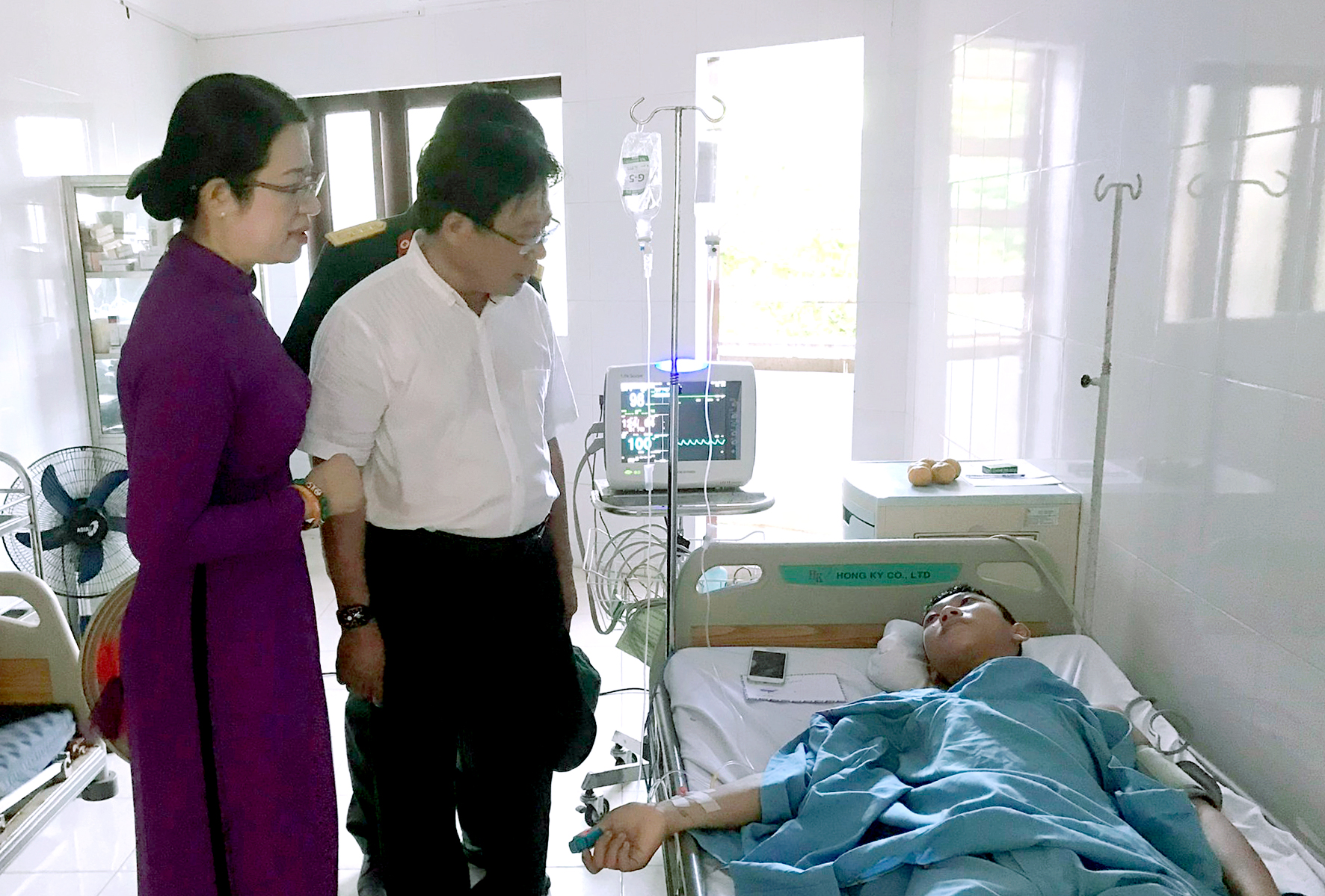 GS, TS. Trần Bình Giang thăm bệnh nhân cấp cứu tại Trung tâm Y tế thị trấn Trường Sa