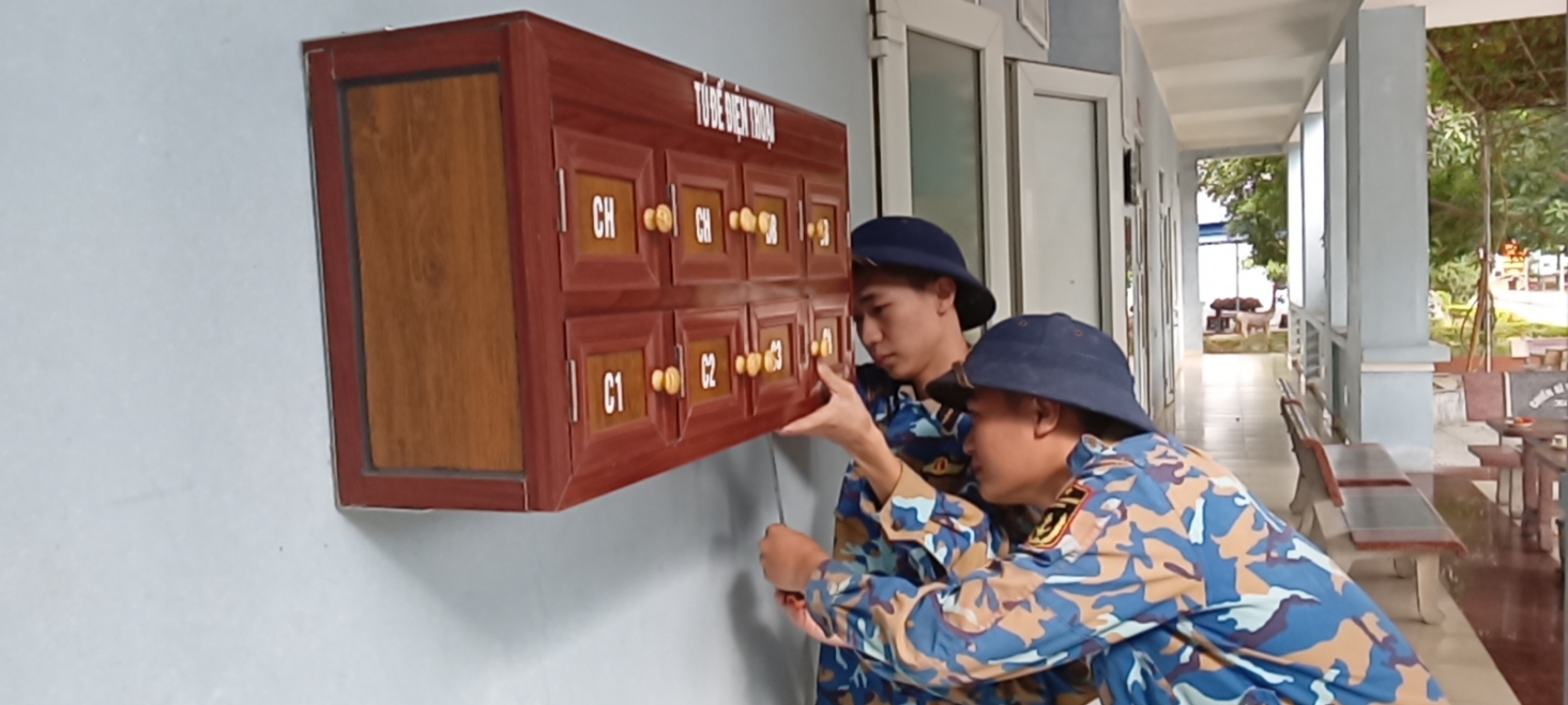 Lắp đặt tủ đựng điện thoại tại đơn vị. Ảnh: ĐV