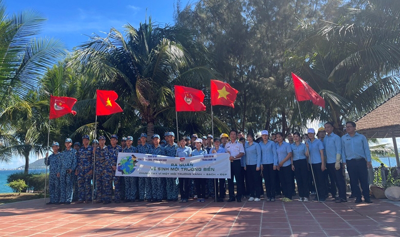 Tuổi trẻ hai đơn vị phối hợp ra quân tổng dọn vệ sinh môi trường biển