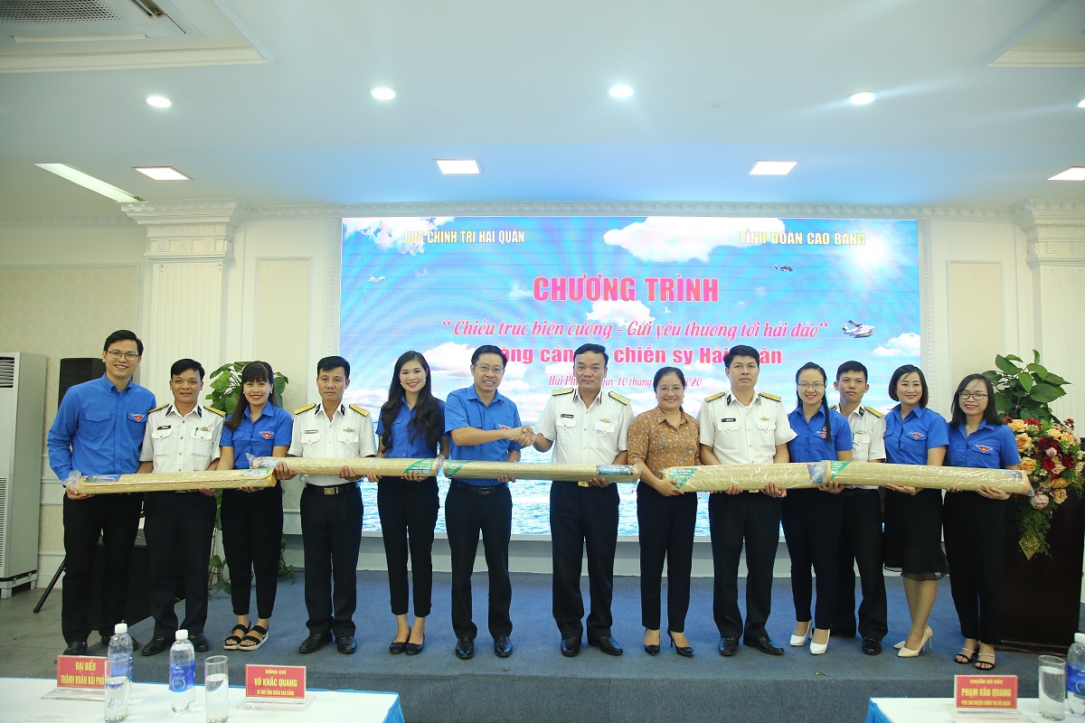 Thay mặt đoàn công tác, đồng chí Vũ Khắc Quang đã trao tặng cán bộ, chiến sĩ Hải quân 1.500 chiếu trúc cùng thư và tranh vẽ. Đây là món quà do cán bộ, đoàn viên, thanh niên tỉnh Cao Bằng quyên góp, ủng hộ, chia sẻ tình cảm, trách nhiệm với biển, đảo của Tổ quốc nói chung và bộ đội Hải quân nói riêng.