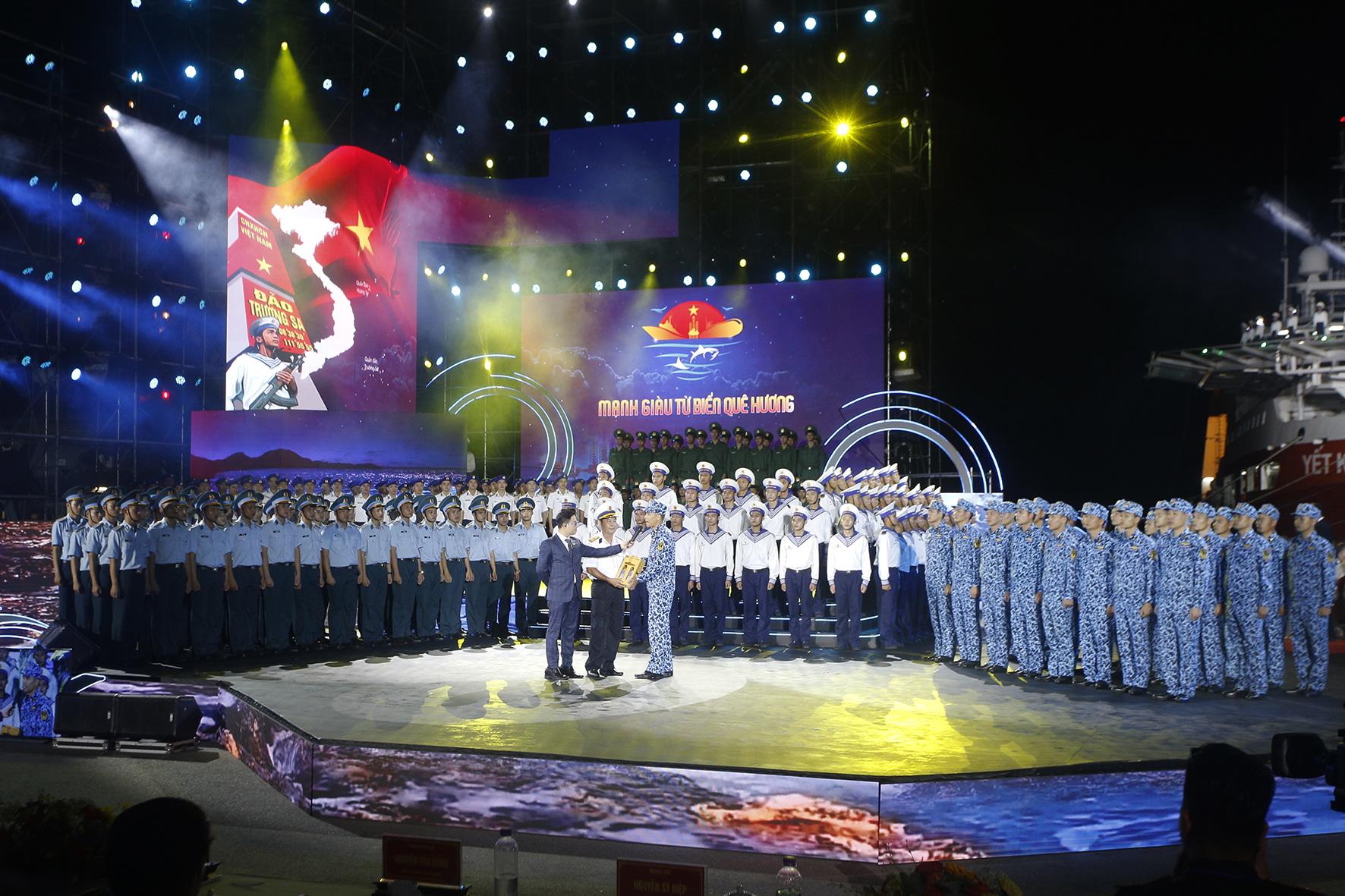 Tối 12/8, tại Quân cảng Học viện Hải quân (TP. Nha Trang, tỉnh Khánh Hòa) Đài Tiếng nói Việt Nam, Ban Tuyên giáo Trung ương, Tổng cục Chính trị Quân đội nhân dân (QĐND) Việt Nam và UBND tỉnh Khánh Hòa phối hợp tổ chức Chương trình chính luận nghệ thuật “Mạnh giàu từ biển quê hương”.