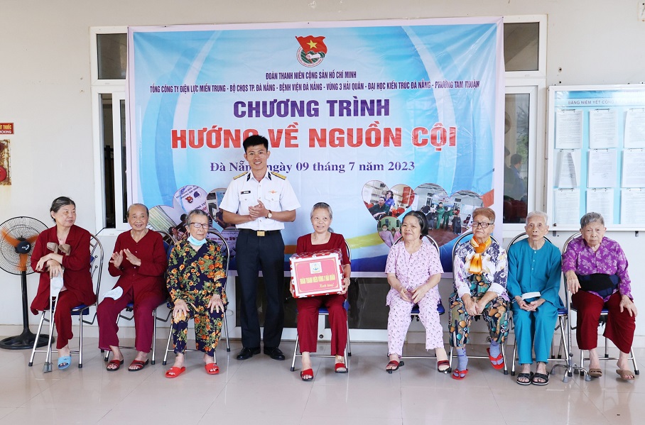 Sáng 9/7, tại Trung tâm Phụng dưỡng người có công với cách mạng thành phố Đà Nẵng, đoàn thanh niên Vùng 3 Hải quân phối hợp với các tổ chức đoàn trên địa bàn đóng quân tổ chức chương trình “Hướng về cội nguồn”.