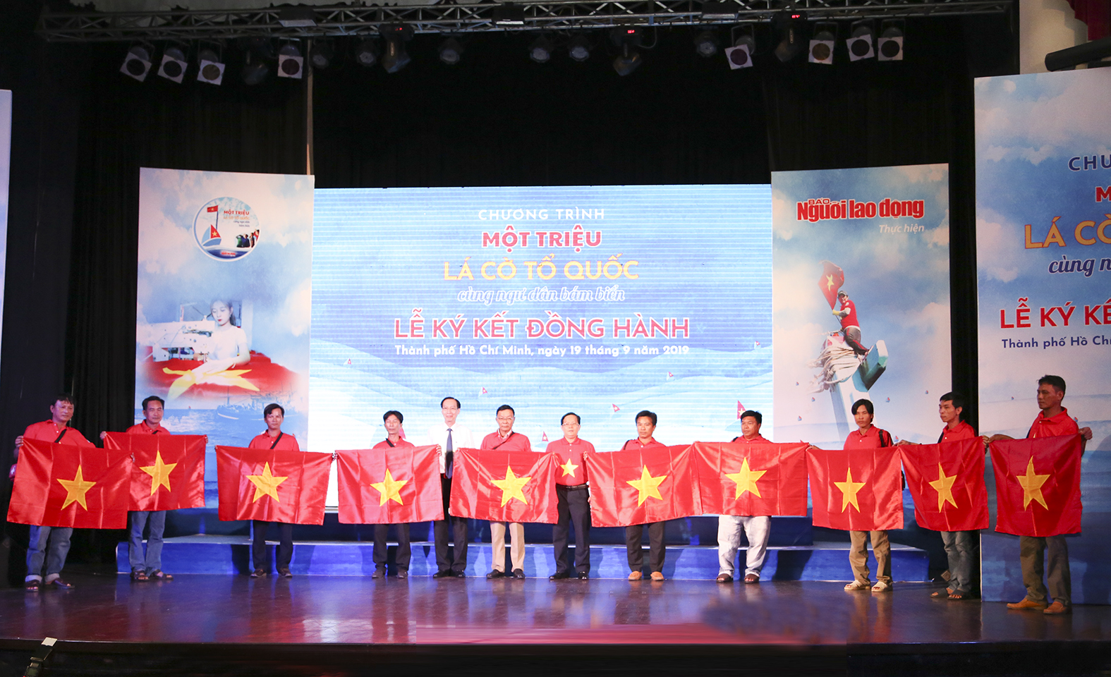 Sáng 19-9, tại TP. Hồ Chí Minh, Báo Người lao động tổ chức ký kết Chương trình “Một triệu lá cờ Tổ quốc cùng ngư dân bám biển” cùng các bộ, ban, ngành, lực lượng Hải quân, doanh nghiệp.