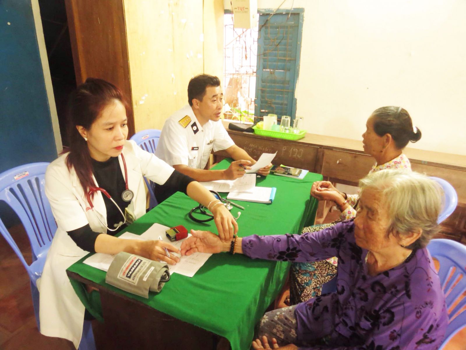 Theo đó, 2 đơn vị đã tổ chức đoàn khám bệnh gồm 17 y, bác sĩ và nhân viên y tế, tổ chức khám bệnh, cấp thuốc miễn phí cho 120 đối tượng người nghèo, người già, gia đình chính sách và ngư dân trên địa bàn Ấp 6, thị trấn An Thới, huyện đảo Phú Quốc.