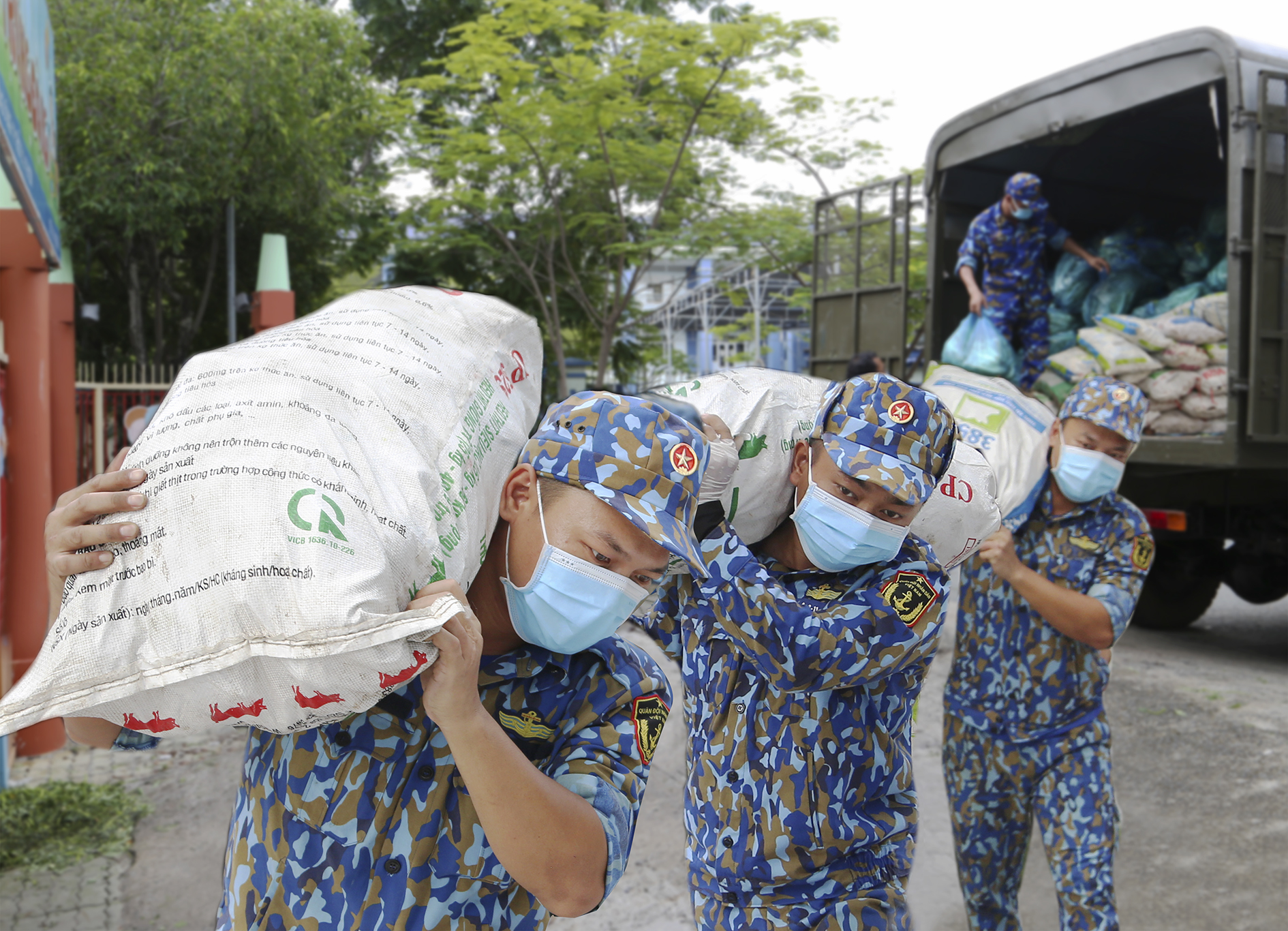 Khi con tàu cùng hơn 300 tấn nông sản cập cảng, vấn đề còn lại là vận chuyển tới tay người dân một cách nhanh nhất. Đại tá Hoàng Minh Dũng cho biết thêm: “Vùng 2 huy động 10 xe vận tải quân sự có tải trọng từ 3-5 tấn để tham gia chuyển nông sản từ tàu đến các điểm tập kết theo sự điều phối của các địa phương. Để bảo đảm tốc độ vận chuyển nhanh đến người dân chúng tôi còn phối hợp với các đơn vị khác trong Quân chủng để tăng cường thêm xe vận chuyển”.