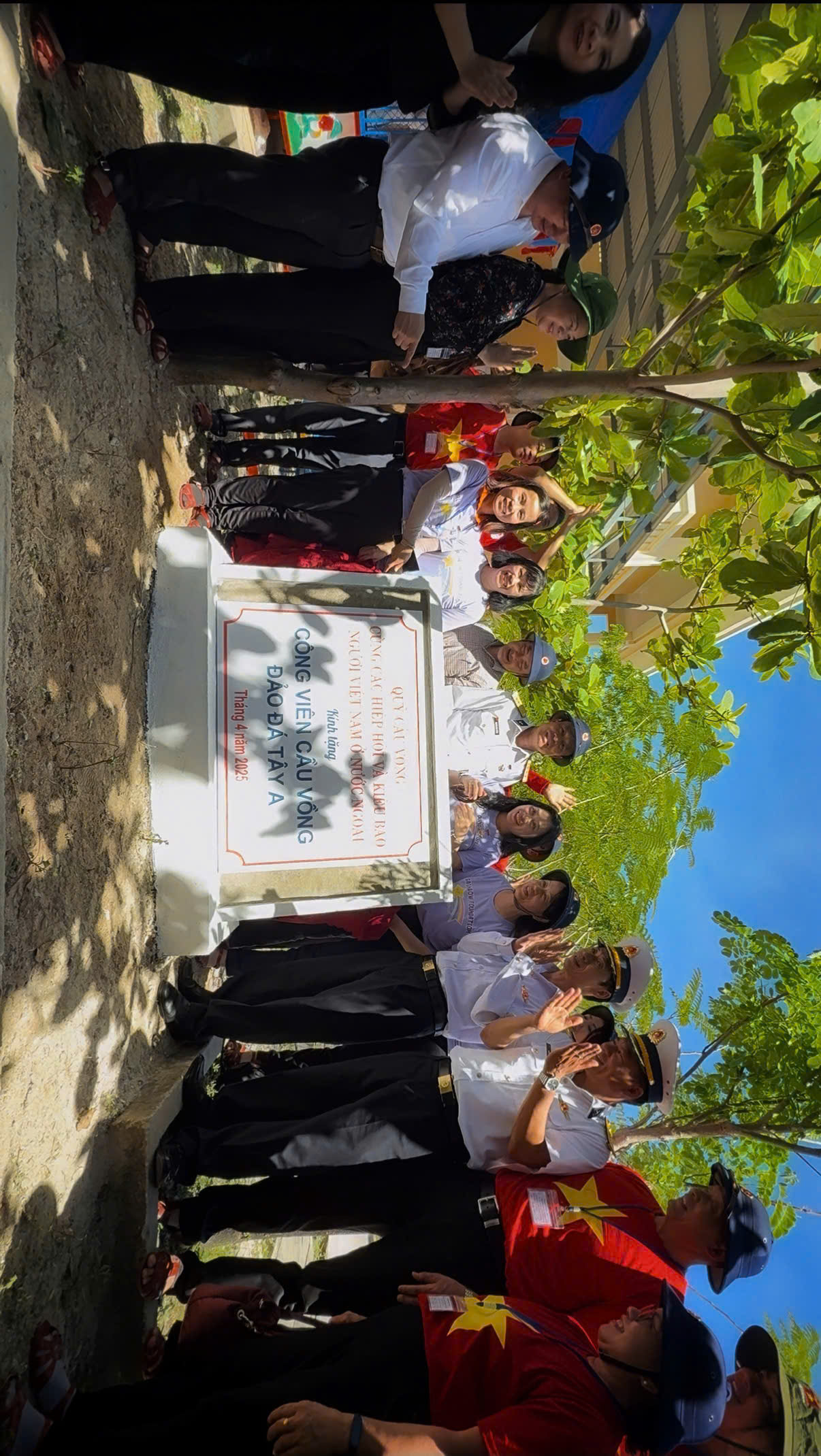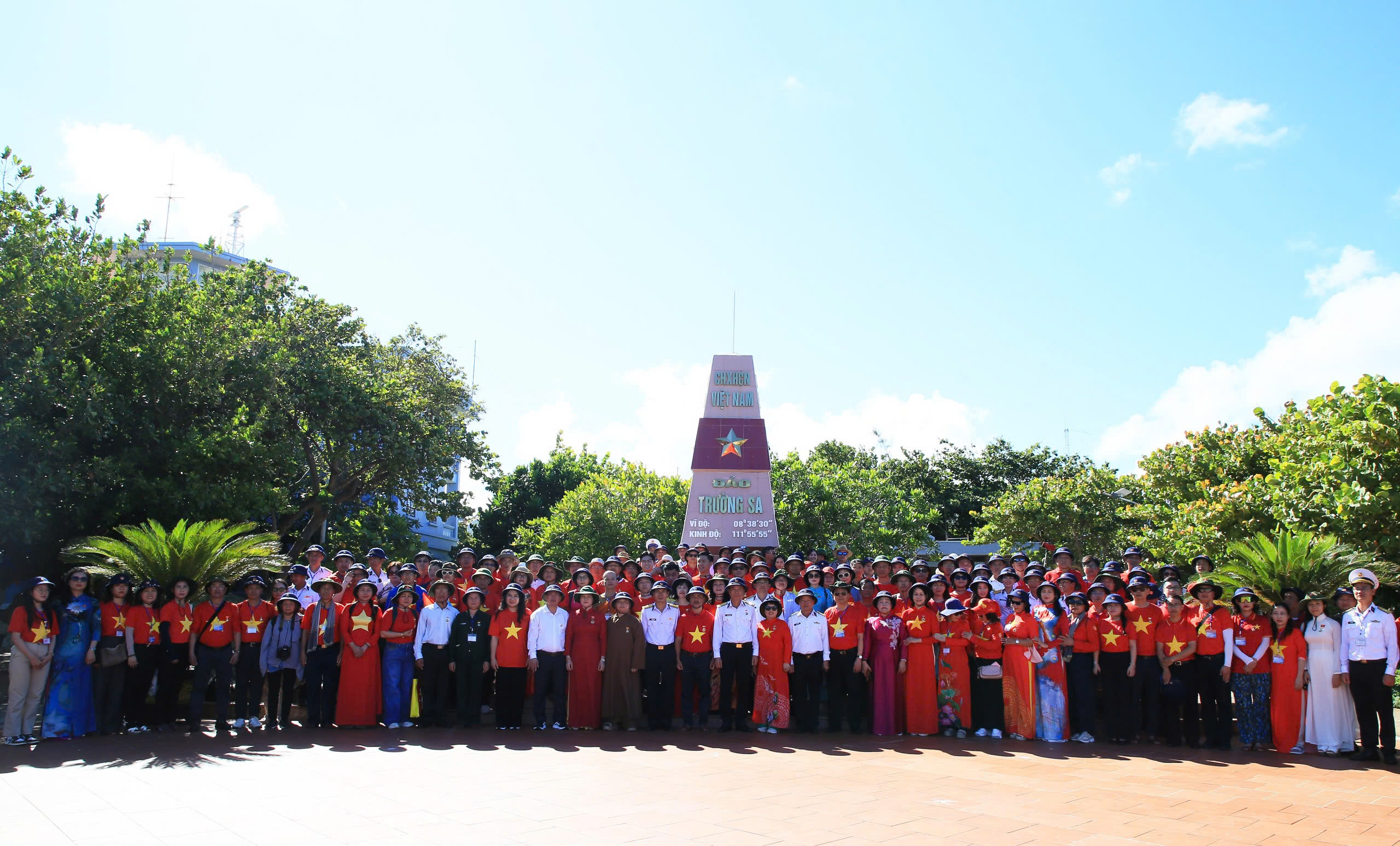 Đoàn công tác chụp ảnh lưu niệm tại thị trấn Trường Sa