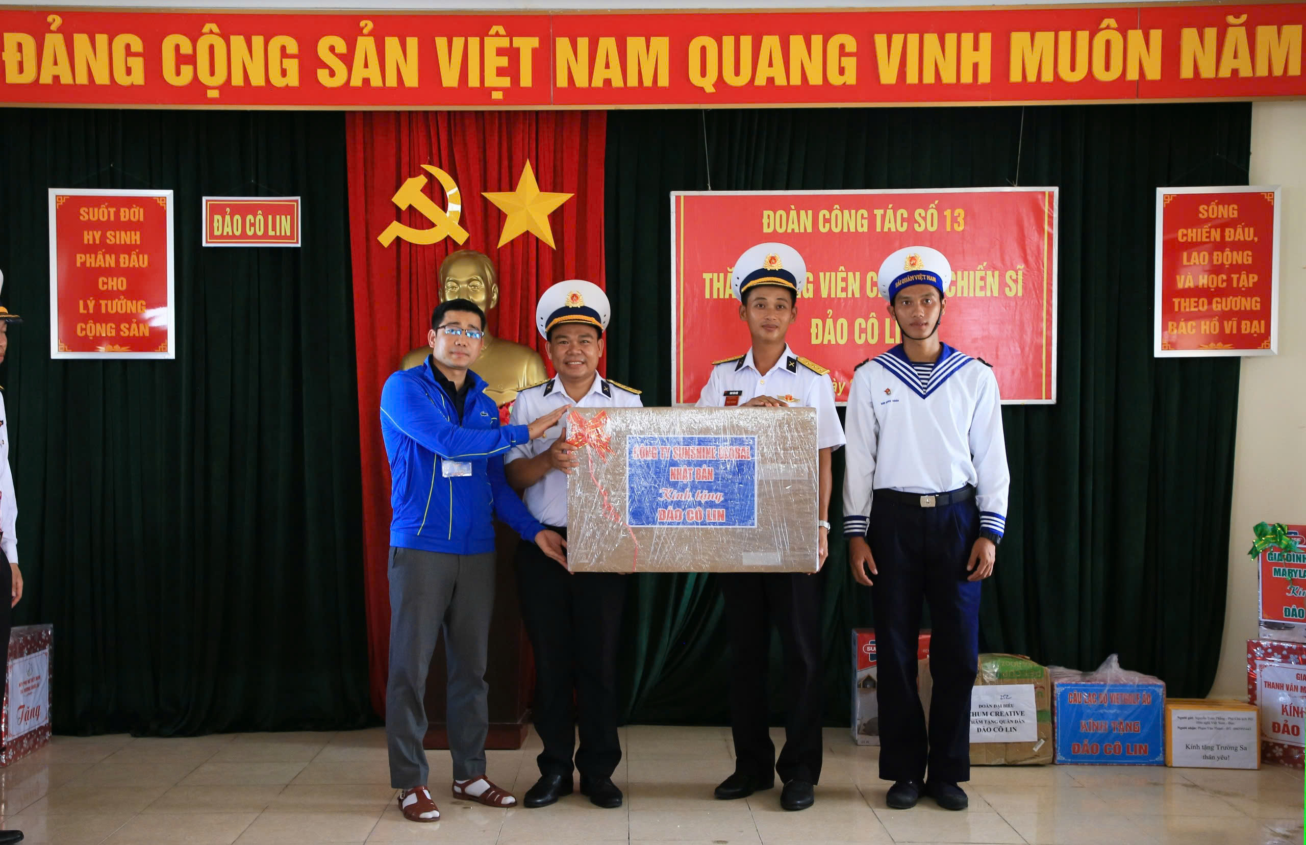 Đại biểu kiều bào Nhật Bản tặng quà cán bộ, chiến sĩ đảo Cô Lin