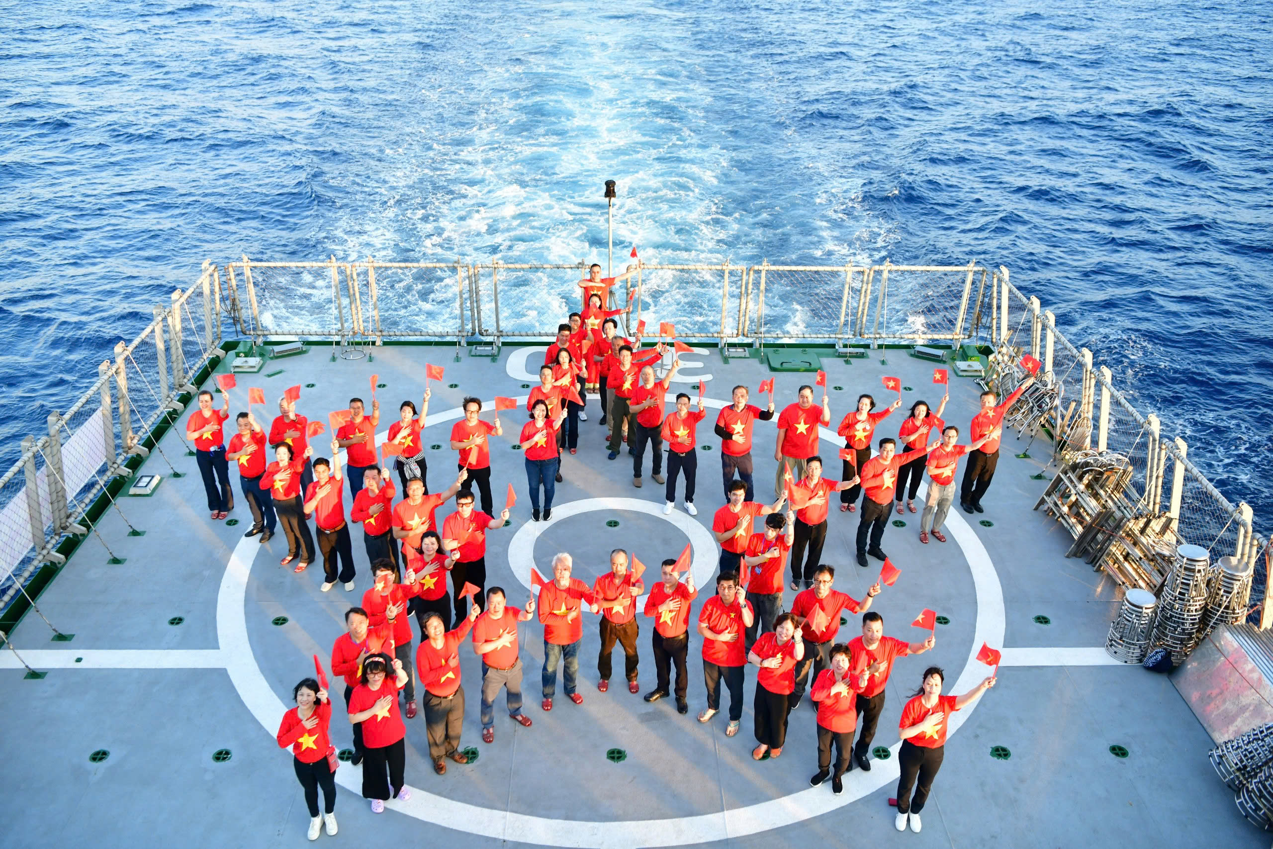 Các đại biểu xếp hình ngôi sao vàng trên Tàu KN 390