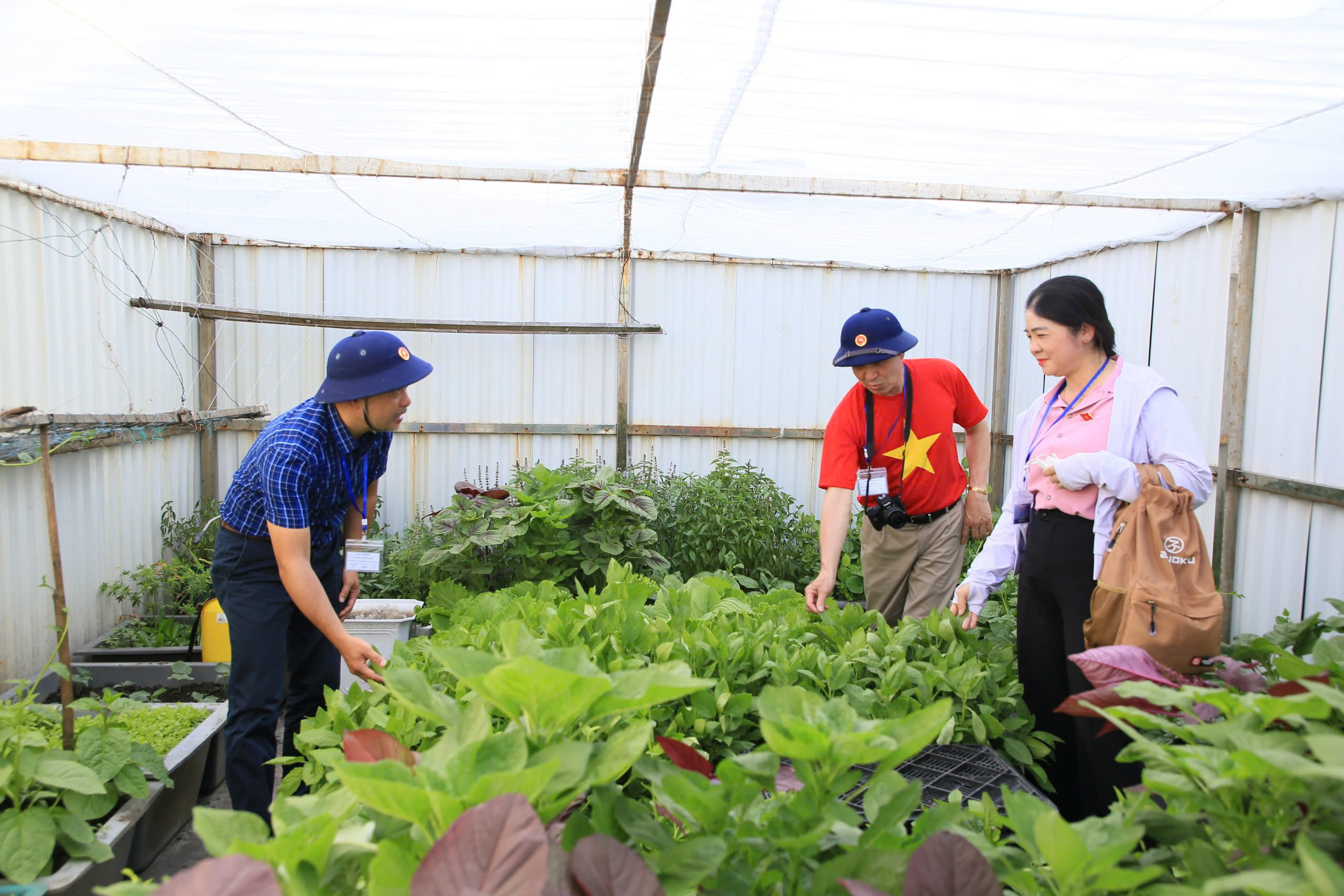 Các đại biểu tham quan vườn rau của bộ đội trên đảo Len Đao