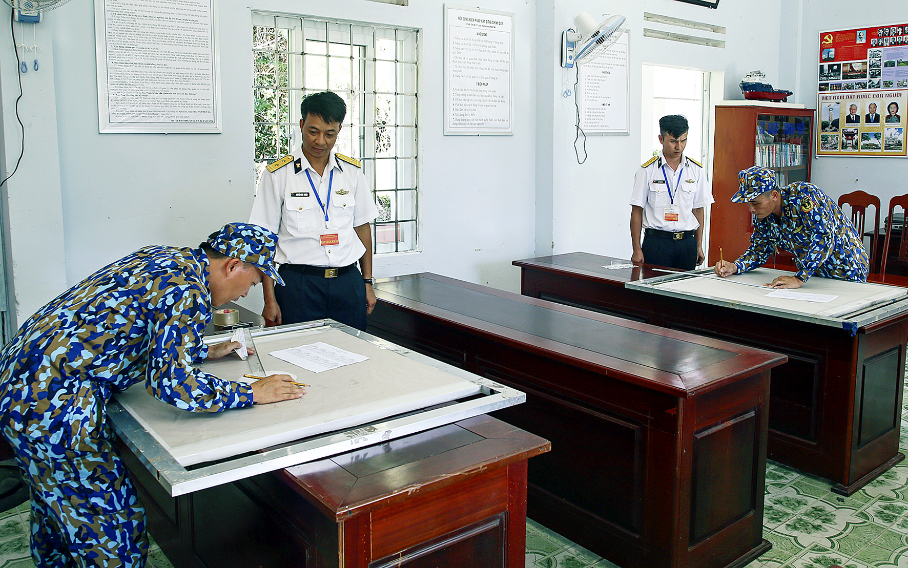 Nội dung trên đặt ra cho ca trực “giải bài toán” khẩn cấp trên biển đồng thời cũng là để xử lý tình huống cứu nạn. Tình huống giả định là cán bộ, chiến sĩ tác nghiệp xử lý cứu nạn tàu cá ngư dân bị sự cố do quá trình cơ động vào luồng tránh trú, gặp thời tiết cực đoan, tàu cá chìm. Cả kíp trực thao tác nhanh, hiệp đồng nhuần nhuyễn, cung cấp chính xác tọa độ mục tiêu để các lực lượng tìm kiếm khoanh vùng, xác định vị trí của tàu cá mất tích.