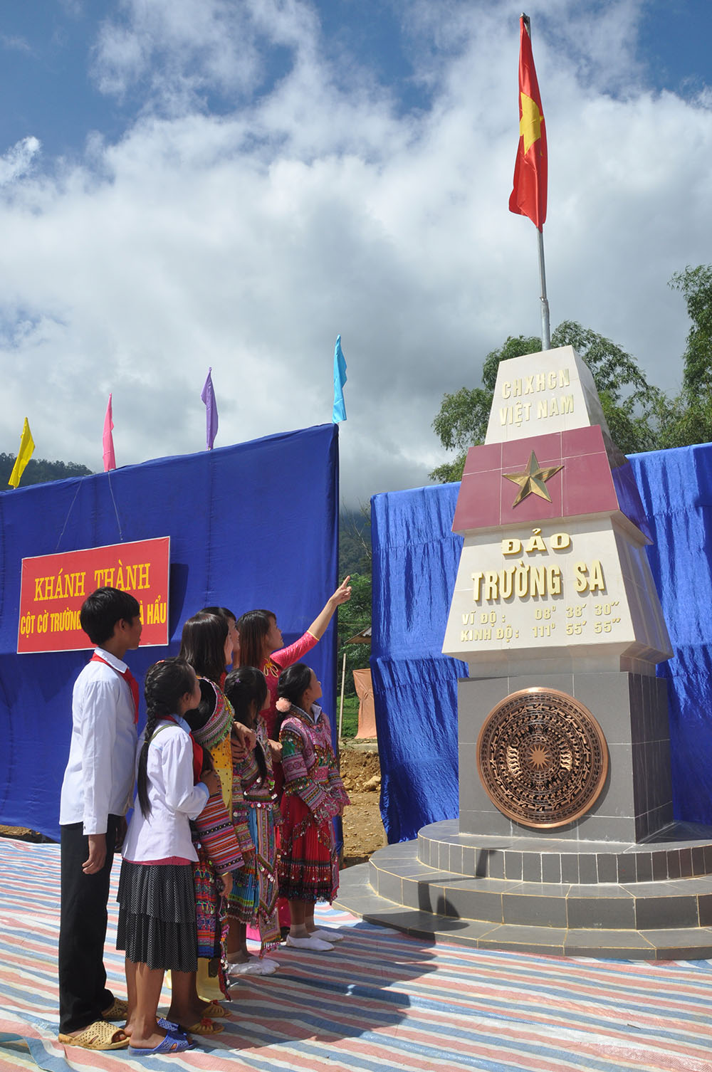“Đất nước của em không chỉ có núi rừng nơi em và đồng bào mình đang sống, nó rộng ra tít ngoài kia-nơi biển khơi có quần đảo Hoàng Sa và Trường Sa ở vĩ độ 8o 38' 30'', kinh độ 111o 55' 55''”. “Sao, em biết cả kinh độ, vĩ độ của Trường Sa cơ à?". Em cười tít mắt: "Thì ở trên cột mốc ghi rõ mà. Từ ngày có cột cờ này, ngày nào chúng em cũng chơi xung quanh cột mốc nên thuộc cả”. Thế mới thấy có cách học hiệu quả nào hơn chính là mô hình, là cái chúng được nhìn thấy tận mắt và yêu thích. Trường Sa đã đến rất gần với những đứa trẻ và cả những người dân xã Nà Hẩu, huyện Văn Yên.