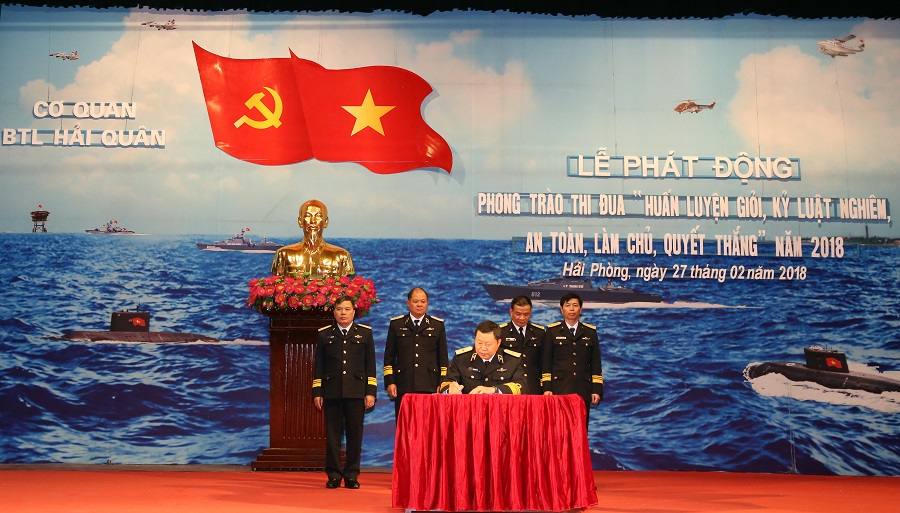 Chiều 27-2, tại Hải Phòng, Cơ quan Bộ Tư lệnh Hải quân đã tổ chức Sơ kết đợt thi đua cao điểm “Mừng Đảng, mừng xuân, ra quân quyết thắng” và Lễ phát động thi đua trong huấn luyện năm 2018 với chủ đề “Huấn luyện giỏi, kỷ luật nghiêm, an toàn, làm chủ, quyết thắng”. Chuẩn Đô đốc Đặng Minh Hải, Phó Chính ủy Hải quân dự và phát biểu chỉ đạo.