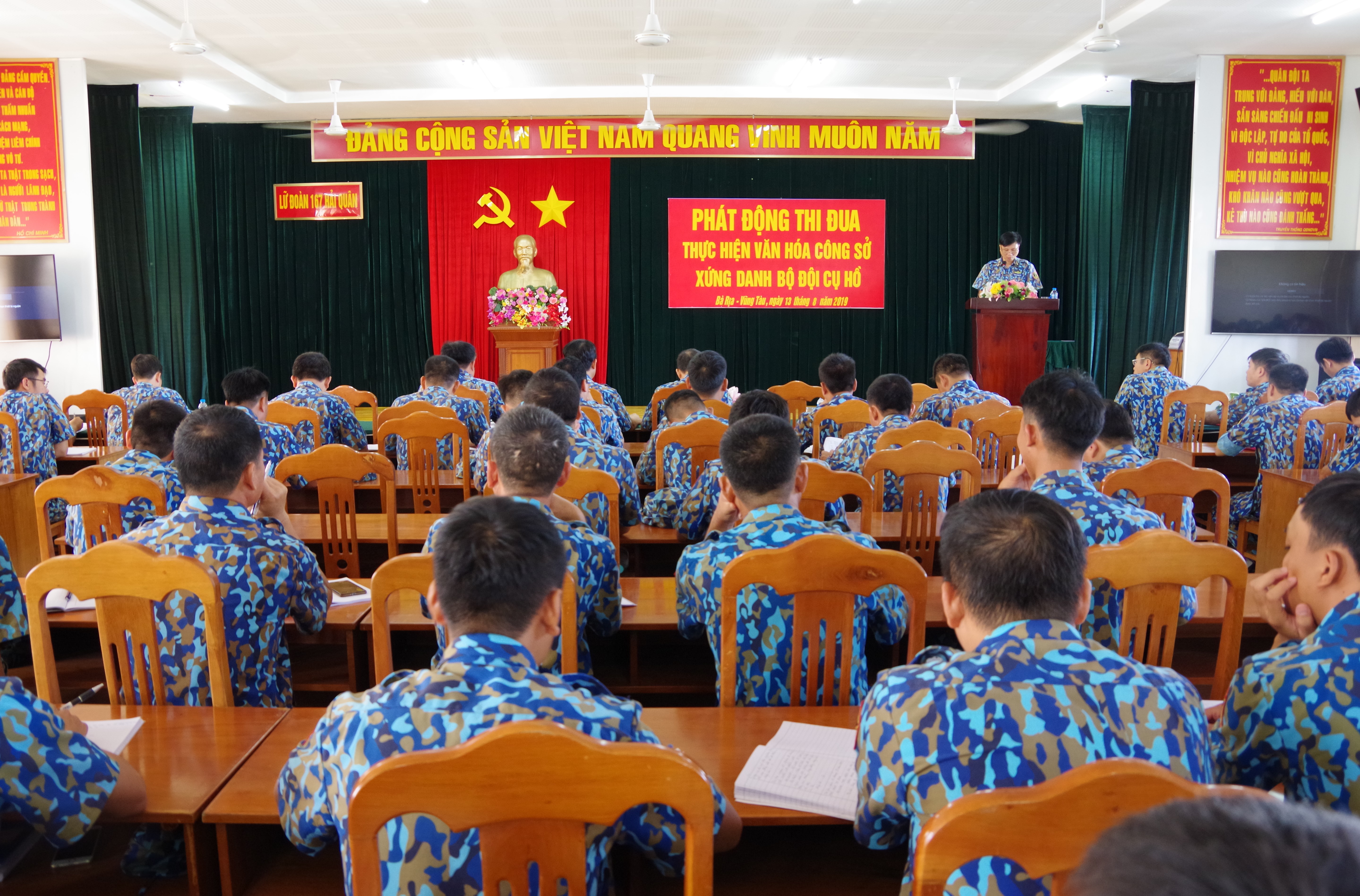 *Sáng 13-8, tại căn cứ Long Sơn, tỉnh Bà Rịa-Vũng Tàu, Lữ đoàn 167, Vùng 2 Hải quân tổ chức phát động phong trào thi đua với chủ đề “Cán bộ, chiến sĩ Lữ đoàn 167 Hải quân thi đua thực hiện văn hóa công sở, xứng danh Bộ đội Cụ Hồ”.