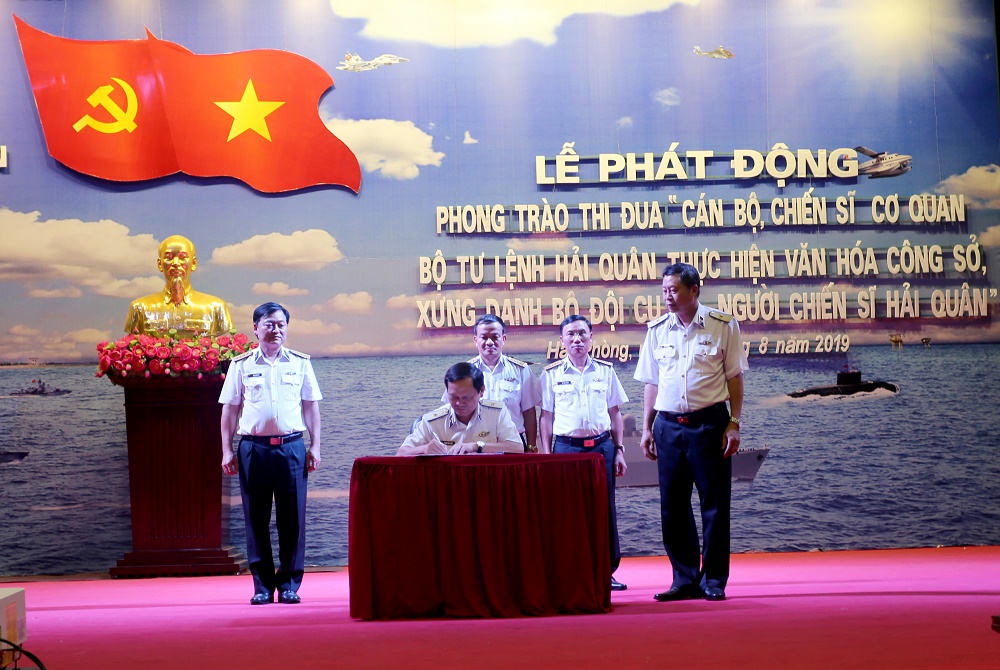 Chiều 13-8, tại Hải Phòng, cơ quan Bộ Tư lệnh Hải quân đã tổ chức lễ phát động Phong trào thi đua “Cán bộ, chiến sĩ cơ quan Bộ Tư lệnh Hải quân thực hiện văn hóa công sở, xứng danh Bộ đội Cụ Hồ-Người chiến sĩ Hải quân”. Chuẩn Đô đốc Đặng Minh Hải, Phó Chính ủy Hải quân dự và chỉ đạo.