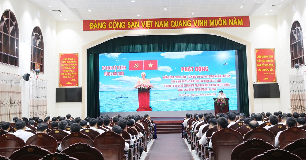 Tối 27/5, tại TP. Cam Ranh, tỉnh Khánh Hòa, khối cơ quan Bộ Tư lệnh Vùng 4 Hải quân tổ chức phát động đợt thi đua cao điểm chào mừng Đại hội Thi đua quyết thắng Vùng 4 giai đoạn 2019–2024; phát động hưởng ứng phong trào “Cả nước thi đua xây dựng xã hội học tập, đẩy mạnh học tập suốt đời giai đoạn 2023–2030”.
