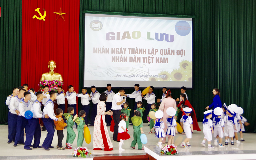 Sáng 22/12, tại TP. Tuy Hoà, tỉnh Phú Yên, hơn 80 cô giáo và học sinh Trường Mầm non công lập xã Bình Kiến đã đến tham quan, giao lưu cùng bộ đội Lữ đoàn 682, Vùng 4 Hải quân.