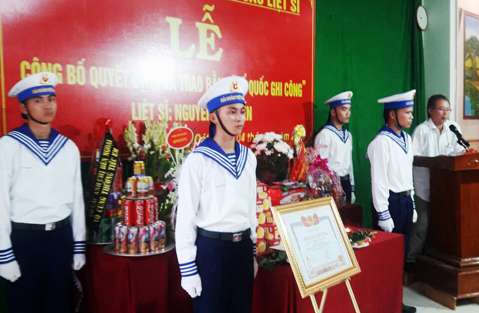 Sáng 4-3, Lữ đoàn Công binh 131 Hải quân phối hợp với Đảng ủy, UBND xã Quảng Cát, thành phố Thanh Hóa, tỉnh Thanh Hóa tổ chức công bố quyết định trao Bằng "Tổ quốc ghi công" đối với Liệt sĩ Nguyễn Văn Tiến.