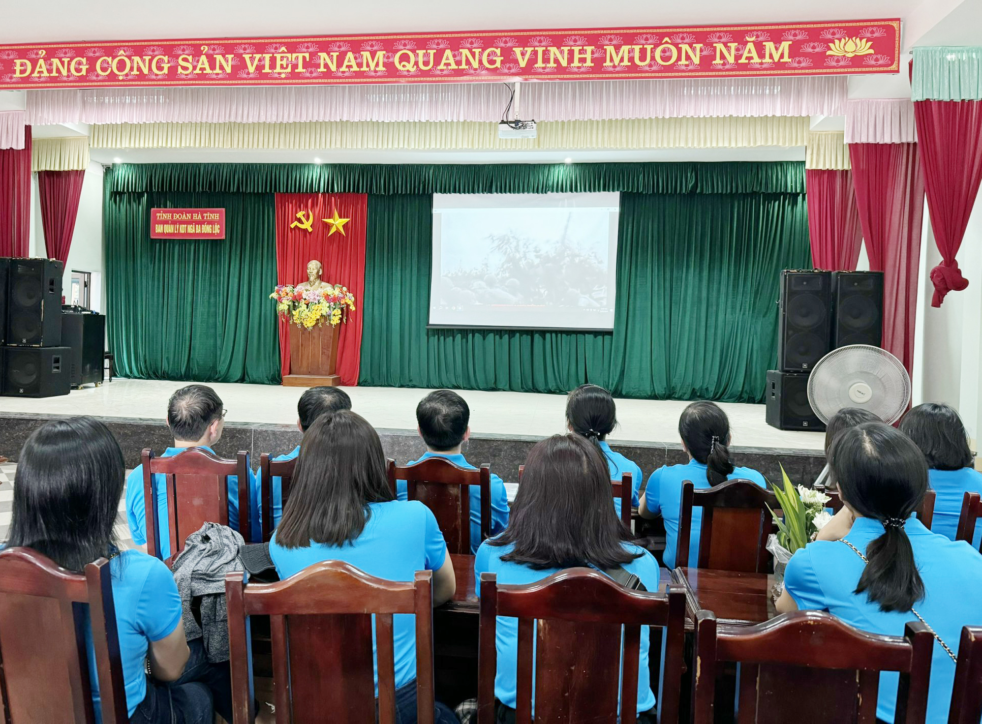 Cán bộ, đoàn viên CĐCS xem phim truyền thống tại khu di tích lịch sử Ngã Ba Đồng Lộc