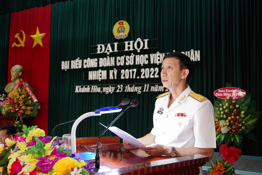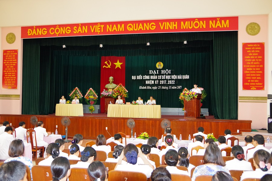 Ngày 23-11, tại TP. Nha Trang, tỉnh Khánh Hòa, Công đoàn cơ sở (CĐCS) Học viện Hải quân đã tổ chức Đại hội đại biểu nhiệm kỳ 2017- 2022. Dự đại hội có các đồng chí trong Đảng ủy, Ban Giám đốc Học viện; đại biểu Ban Công đoàn Hải quân; lãnh đạo các cơ quan, đơn vị Học viện; đại diện cơ quan, đơn vị bạn trên địa bàn đóng quân và 70 đại biểu đại diện cho gần 200 đoàn viên công đoàn trong toàn Học viện.