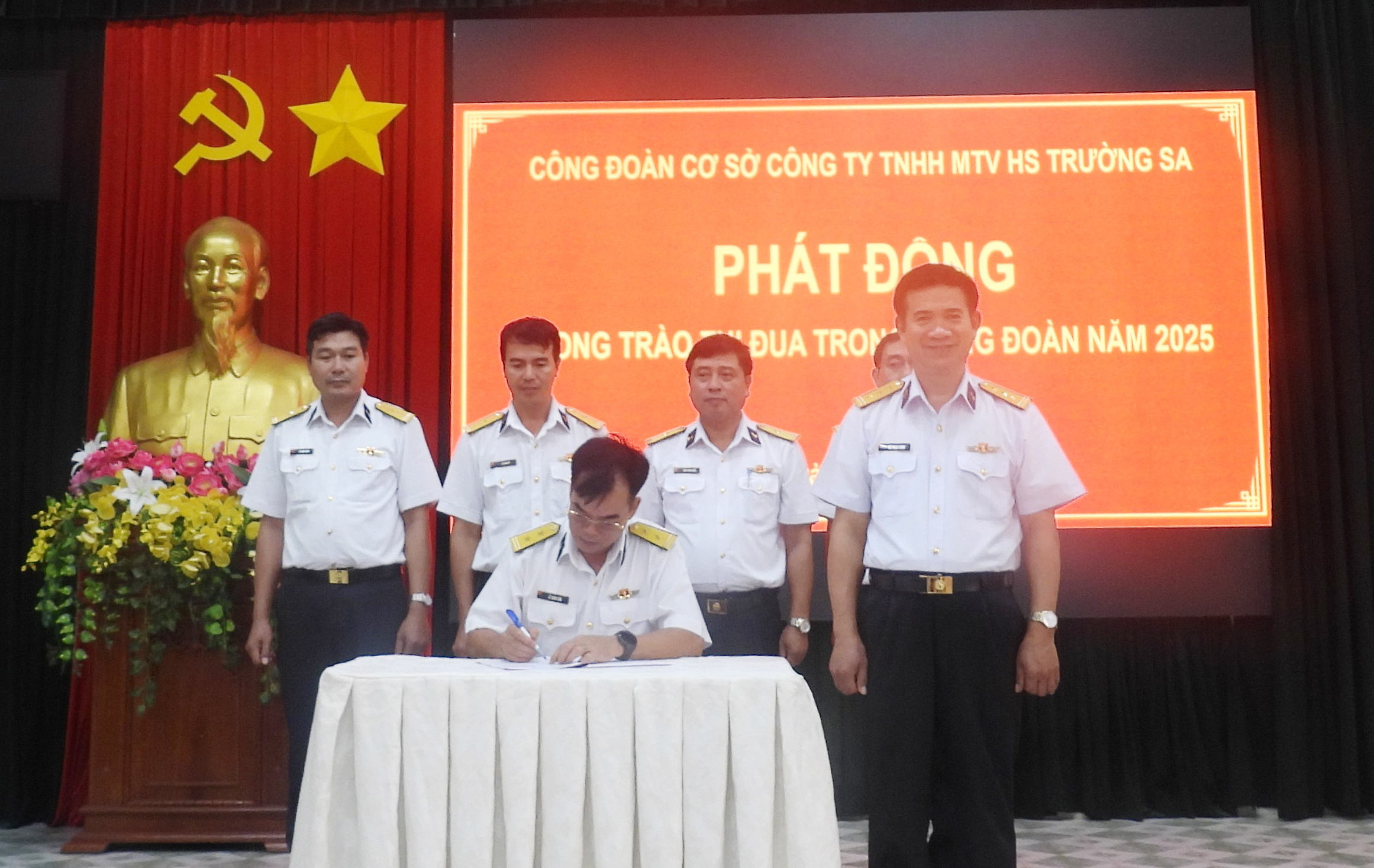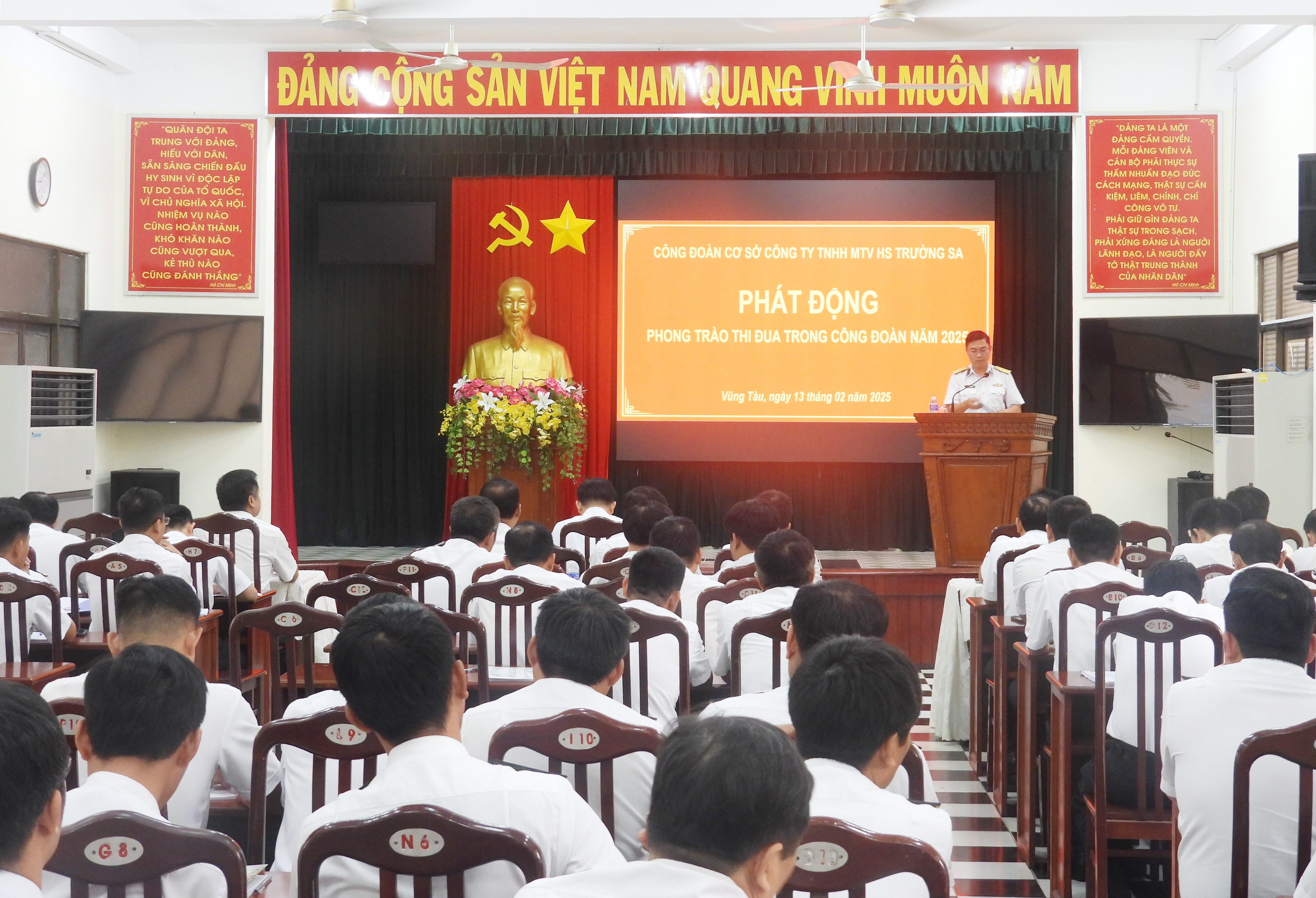 Sáng 13/2, tại TP. Vũng Tàu, tỉnh Bà rịa-Vũng Tàu, Công đoàn cơ sở Công ty Hải sản Trường Sa (Hải đoàn 129 Hải quân) tổ chức phát động phong trào thi đua năm 2025. Thượng tá Bùi Ngọc Sang, Bí thư Đảng ủy, Chính ủy Hải đoàn, Chủ tịch Hội đồng Thi đua - Khen thưởng, chủ trì.