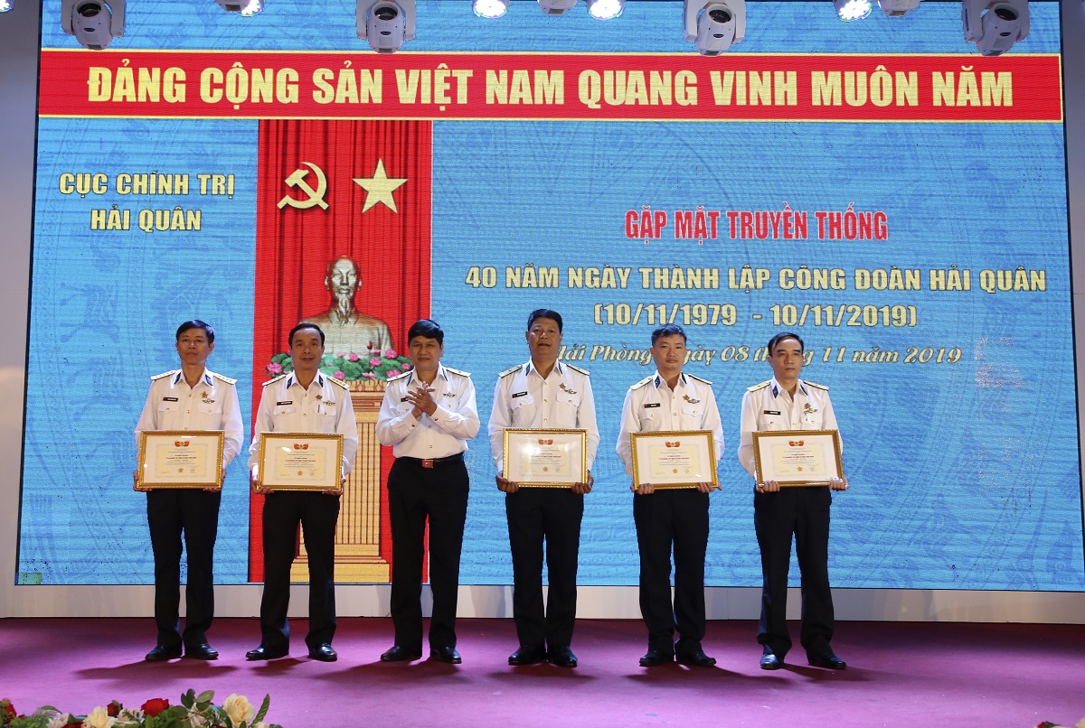 Sáng 8-11, tại Hải Phòng, Công đoàn Hải quân đã tổ chức gặp mặt truyền thống Kỷ niệm 40 ngày thành lập (10-11-1979 - 10-11-2019). Chuẩn Đô đốc Ngô Văn Thuân, Phó Chủ nhiệm Chính trị Hải quân dự và chỉ đạo; đông đảo cán bộ làm công tác chuyên trách và kiêm nhiệm của các tổ chức Công đoàn Hải quân qua các thời kỳ tham dự.