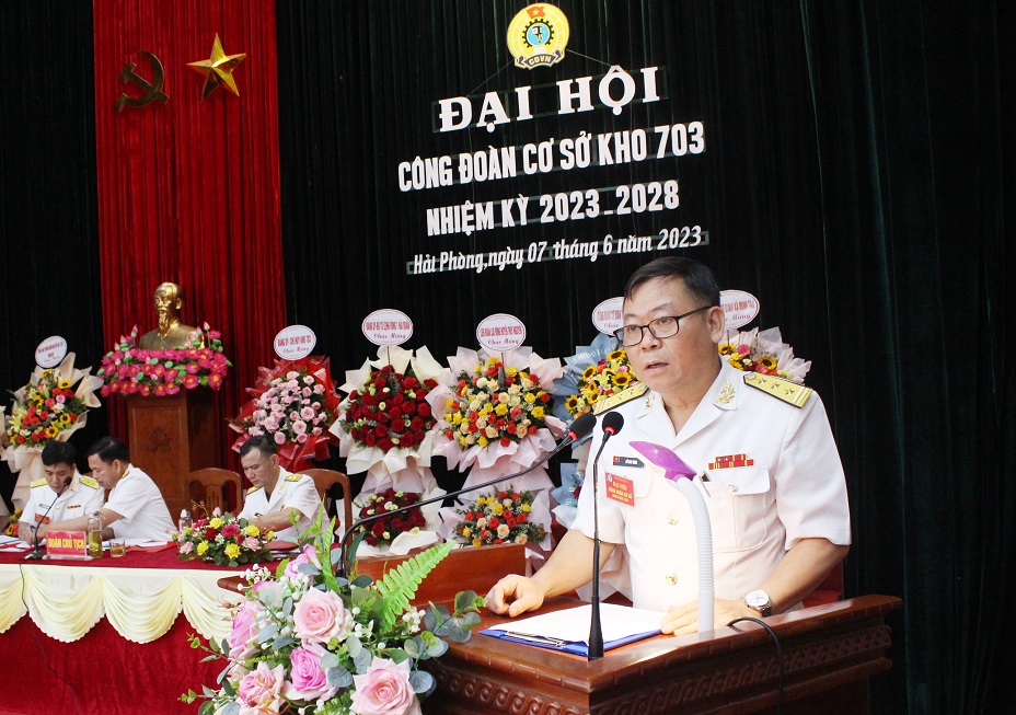 Ngày 7/6, tại huyện Thuỷ Nguyên, TP. Hải Phòng, Công đoàn cơ sở Kho 703, Vùng 1 Hải quân tổ chức Đại hội nhiệm kỳ 2023-2028. Đại tá Vũ Hữu Kiêm, Phó Chính uỷ Vùng 1 Hải quân dự.