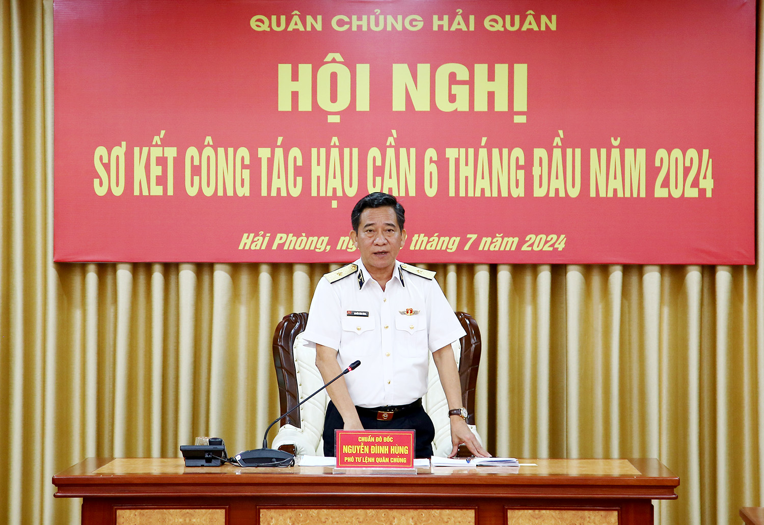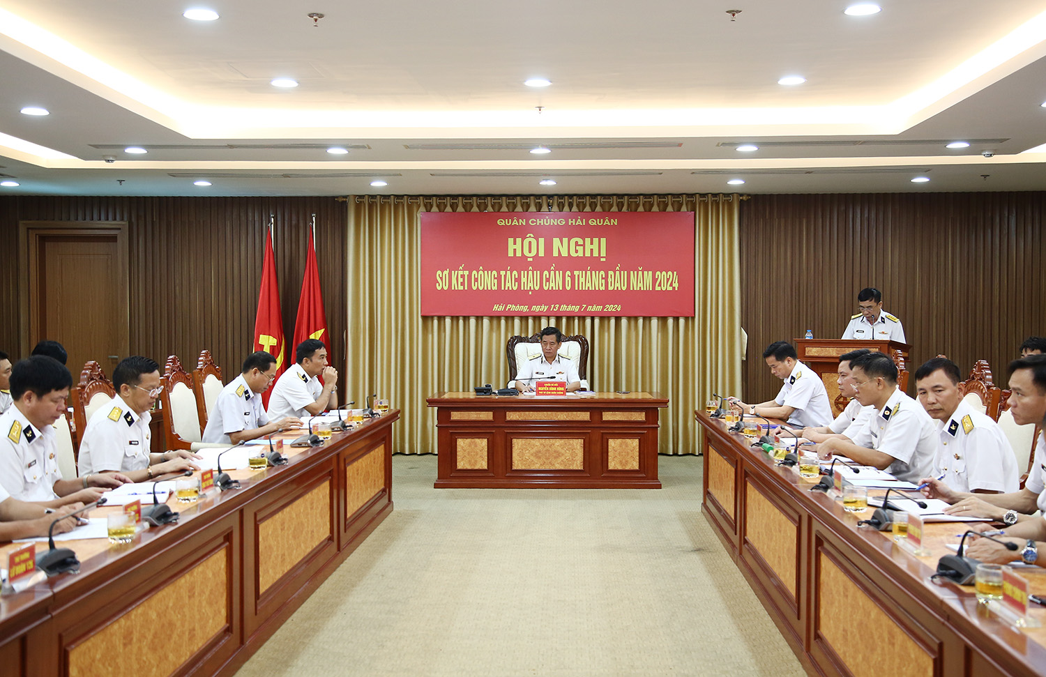 Sáng 13/7, tại Hải Phòng, Quân chủng Hải quân tổ chức Hội nghị sơ kết công tác hậu cần 6 tháng đầu năm, triển khai nhiệm vụ 6 tháng cuối năm 2024. Chuẩn Đô đốc Nguyễn Đình Hùng, Phó Tư lệnh Hải quân dự, chỉ đạo. Đại tá Nguyễn Duy Thiều, Chủ nhiệm Hậu cần Hải quân chủ trì.