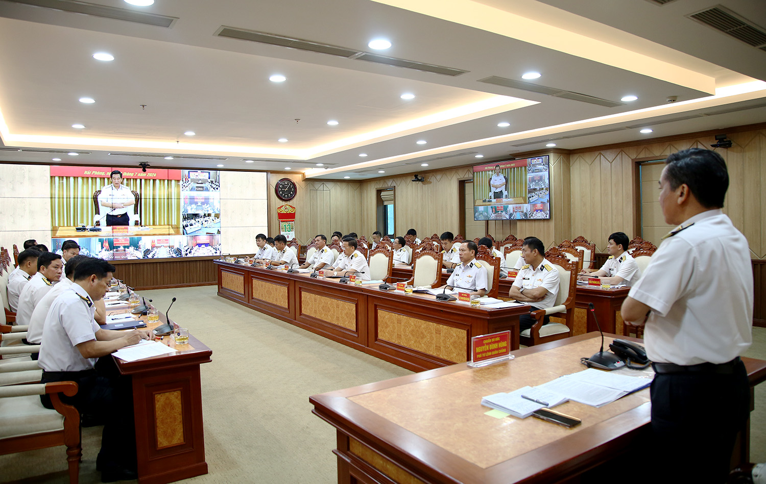 Dự tại 10 điểm cầu có: Thủ trưởng Bộ Tư lệnh các vùng, Quân cảng Sài Gòn, Học viện Hải quân, Viện Kỹ thuật Hải quân, Trường Cao đẳng Kỹ thuật Hải quân; chỉ huy các trung, lữ đoàn và tương đương cùng cán bộ hậu cần - kỹ thuật các đơn vị trong toàn Quân chủng.