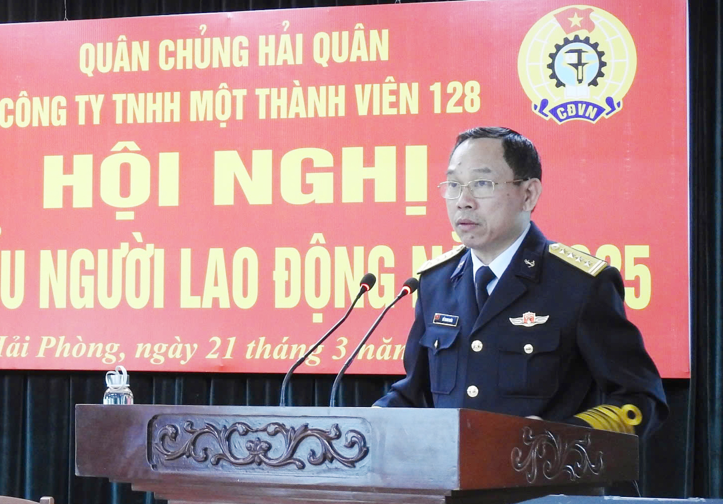 Sáng 21/3, tại Hải Phòng, Công ty TNHH MTV 128 (Quân chủng Hải quân) tổ chức Hội nghị đại biểu người lao động năm 2025. Dự, chỉ đạo có Đại tá Hồ Thanh Hoàn, Phó Chủ nhiệm Chính trị Hải quân; Đại tá Nguyễn Văn Đề, Phụ trách Trưởng ban Công đoàn Quốc phòng.