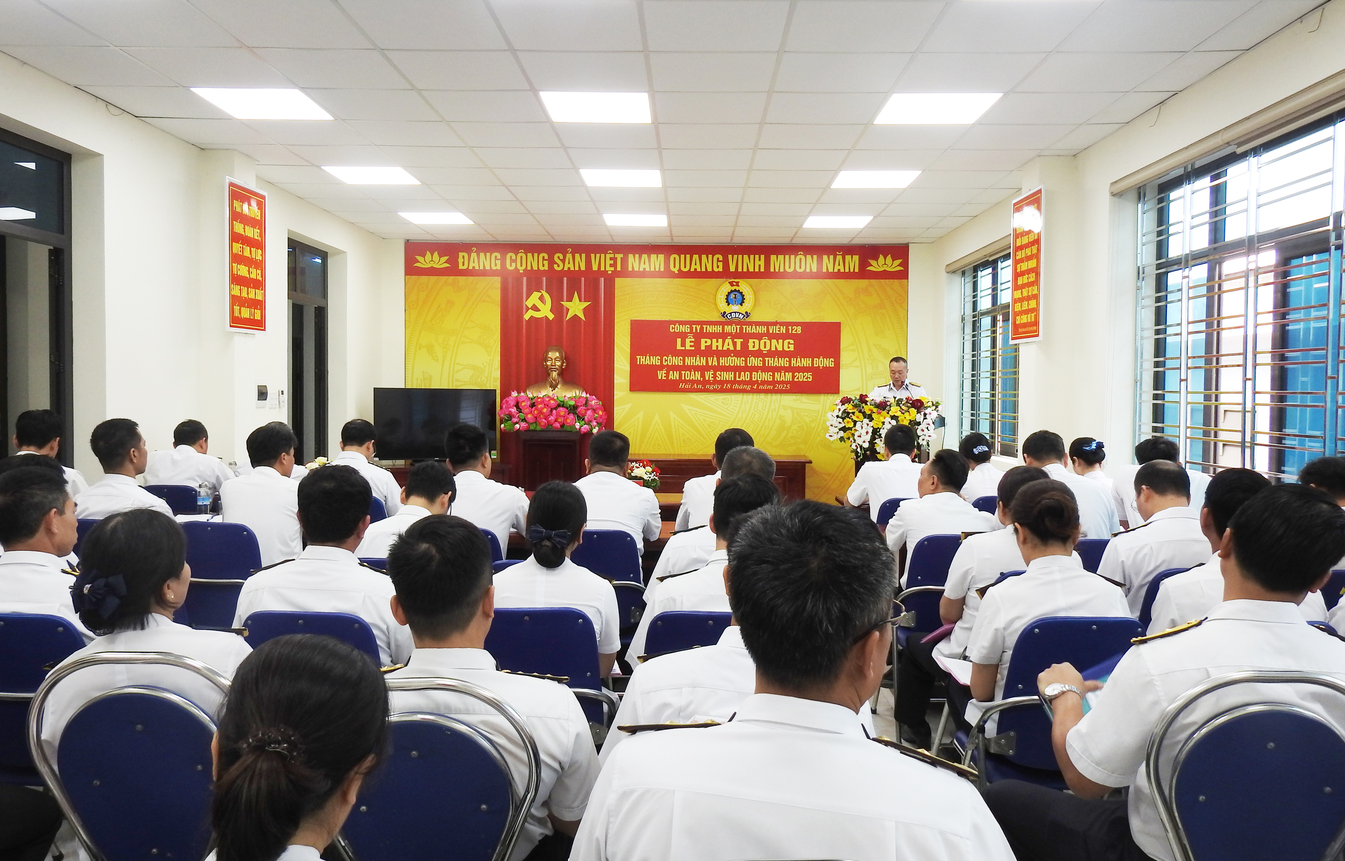 Sáng 18/4, tại Hải Phòng, Công ty TNHH MTV 128 tổ chức Lễ phát động Tháng công nhân và hưởng ứng Tháng hành động về an toàn vệ sinh lao động; tổ chức Hội thi tìm hiểu về phòng cháy chữa cháy và công tác bảo đảm an toàn vệ sinh lao động năm 2025. Đại tá Hoàng Đình Tuấn, Giám đốc Công ty dự và chủ trì.