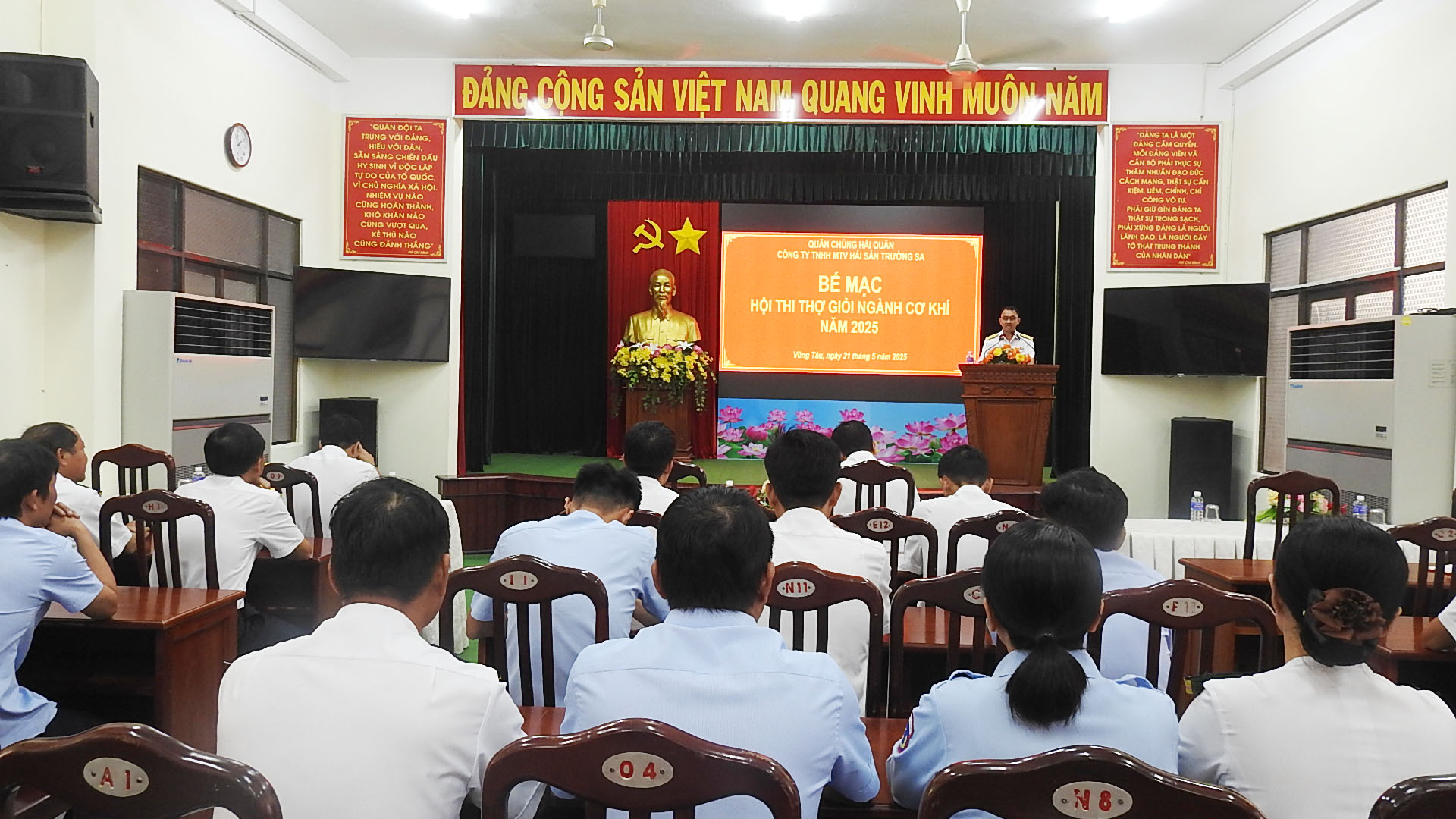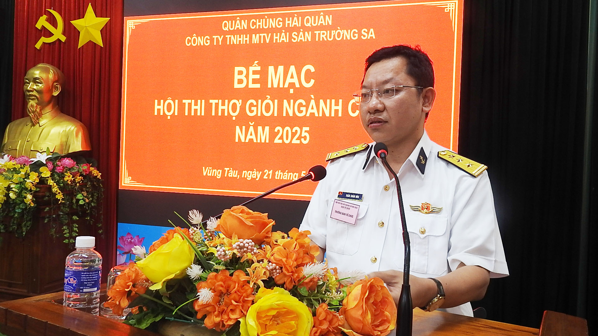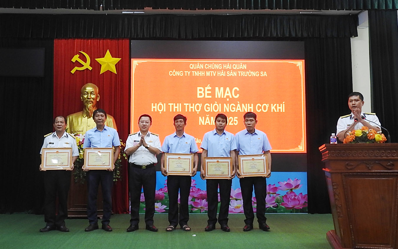 Chiều 21/5, tại TP. Vũng Tàu, Công ty TNHH MTV Hải sản Trường Sa (Hải đoàn 129 Hải quân) tổ chức bế mạc Hội thi thợ giỏi ngành cơ khí năm 2025. Thượng tá Trần Xuân Hòa, Phó Giám đốc Công ty, Trưởng ban tổ chức hội thi chủ trì.