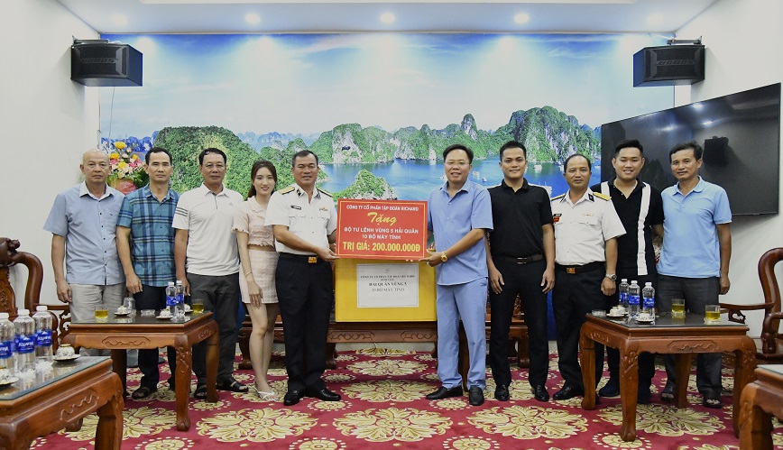Tại buổi tiếp, ông Phạm Quỳnh Anh Tuấn, Tổng Giám đốc Công ty Cổ phần Tập đoàn Richard đã trao tặng Bộ Tư lệnh Vùng 5 Hải quân 10 bộ máy tính trị giá 200 triệu đồng.