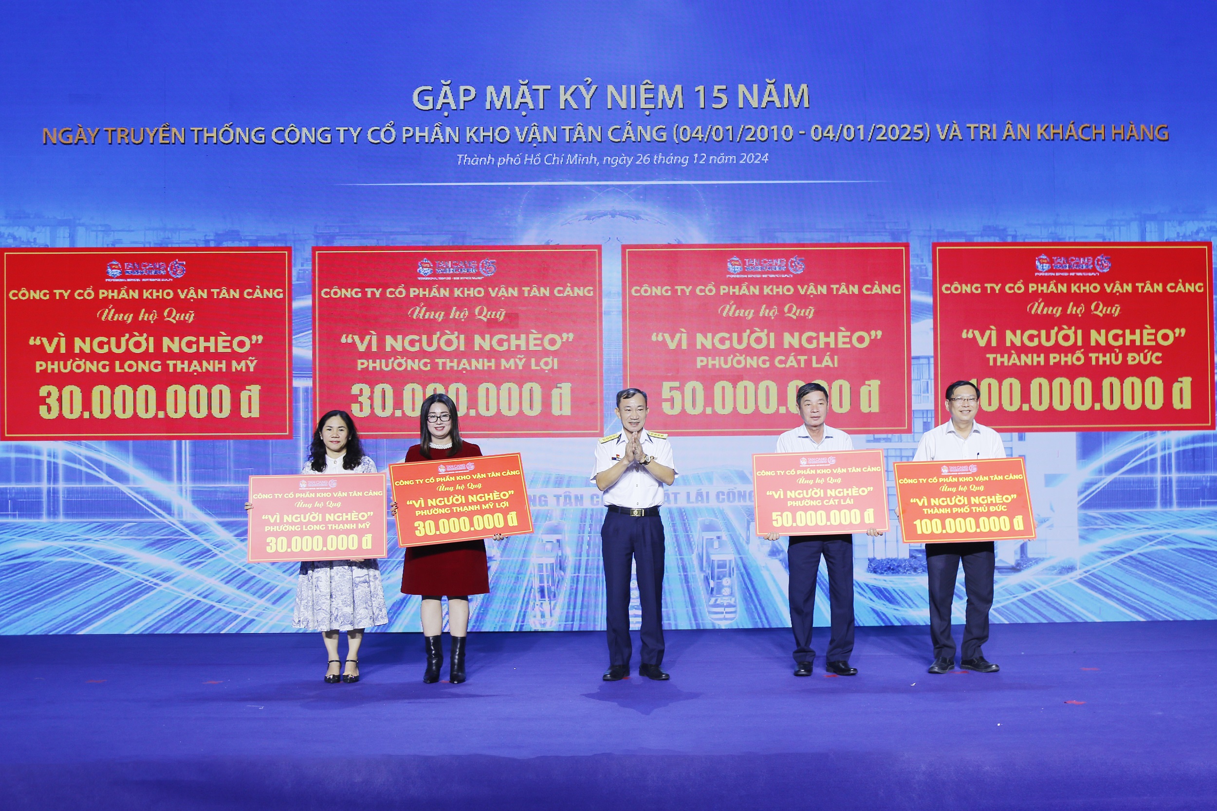 Tại buổi gặp mặt và tri ân khách hàng, Công ty CP Kho vận Tân cảng đã ủng hộ quỹ vì người nghèo của địa phương với số tiền 210 triệu đồng.