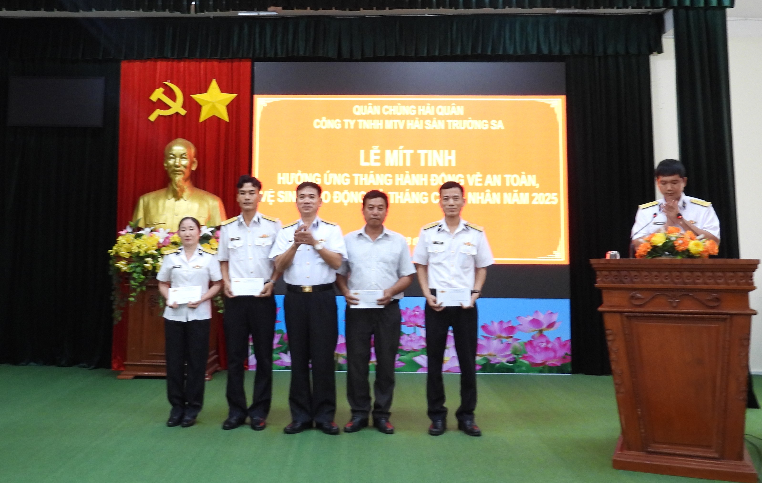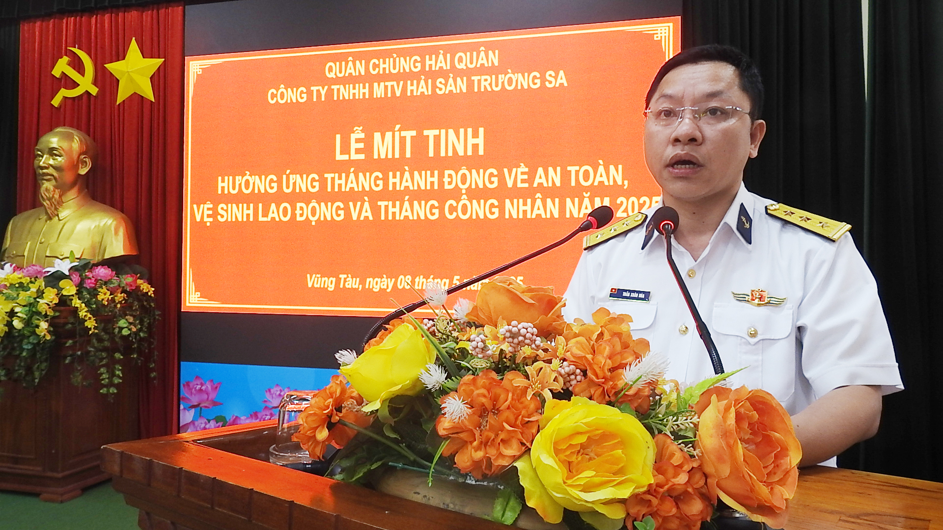 Chiều 8/5, tại Phường 12, TP Vũng Tàu, Công ty Hải sản Trường Sa (Hải đoàn 129 Hải quân) đã tổ chức lễ mít tinh hưởng ứng Tháng hành động về an toàn, vệ sinh lao động và Tháng công nhân năm 2025. Thượng tá Bùi Ngọc Sang, Bí thư Đảng ủy Công ty dự, chỉ đạo; Thượng tá Trần Xuân Hòa, Phó Giám đốc Công ty chủ trì.