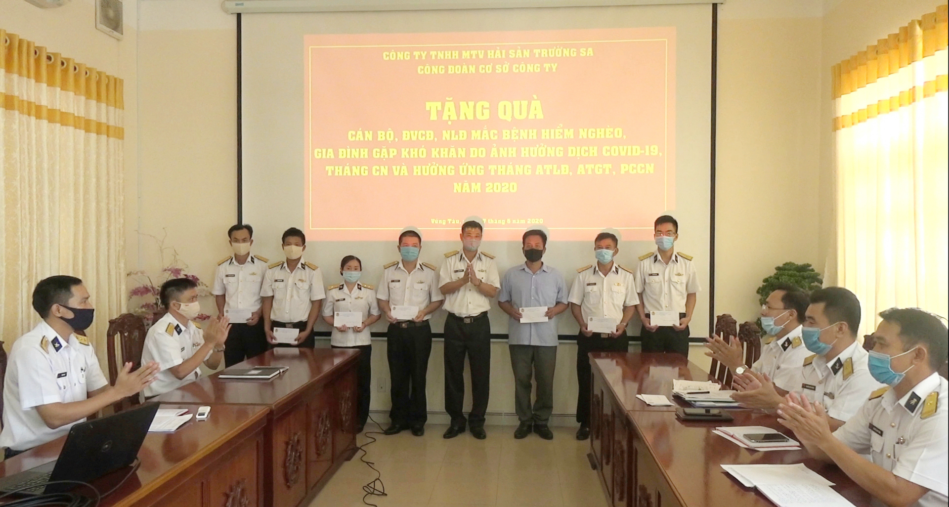 Chiều 7-5, tại TP. Vũng Tàu, Công ty Hải sản Trường Sa (Hải đoàn 129), Tổng công ty Tân cảng Sài Gòn tổ chức thăm, tặng quà cán bộ, đoàn viên công đoàn, người lao động đang công tác tại đơn vị mắc bệnh hiểm nghèo, gia đình khó khăn do ảnh hưởng của dịch Covid-19.