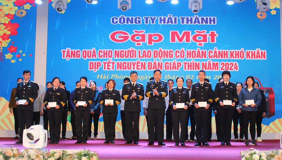 Nhân dịp chuẩn bị đón Tết Nguyên đán Giáp Thìn 2024, sáng 5/2, tại Hải Phòng, Công ty Hải Thành tổ chức gặp mặt, tặng quà người lao động có hoàn cảnh khó khăn đang công tác tại Công ty. Tới dự có Thượng tá Nguyễn Anh Tuấn, Giám đốc; Đại tá Nguyễn Đức Anh, Bí thư Đảng ủy, Chủ tịch Công ty cùng lãnh đạo, chỉ huy các cơ quan, đơn vị.
