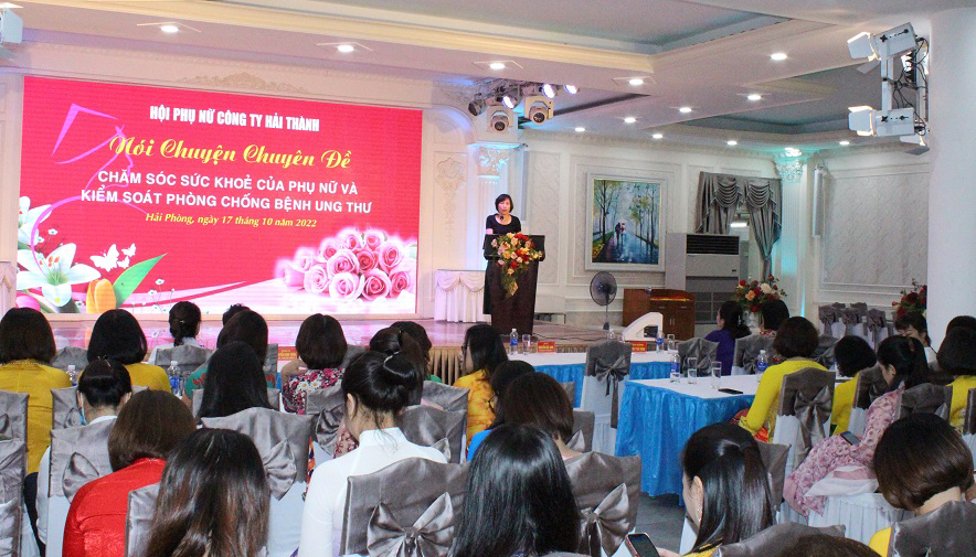 Nhân dịp này, Hội phụ nữ Công ty đã mời bác sỹ chuyên khoa chăm sóc sức khỏe sinh sản, Trung tâm kiểm soát bệnh tật Hải Phòng đến chia sẻ, cung cấp thông tin và các kiến thức chăm sóc sức khỏe sinh sản, tầm soát bệnh ung thư hay gặp ở phụ nữ…